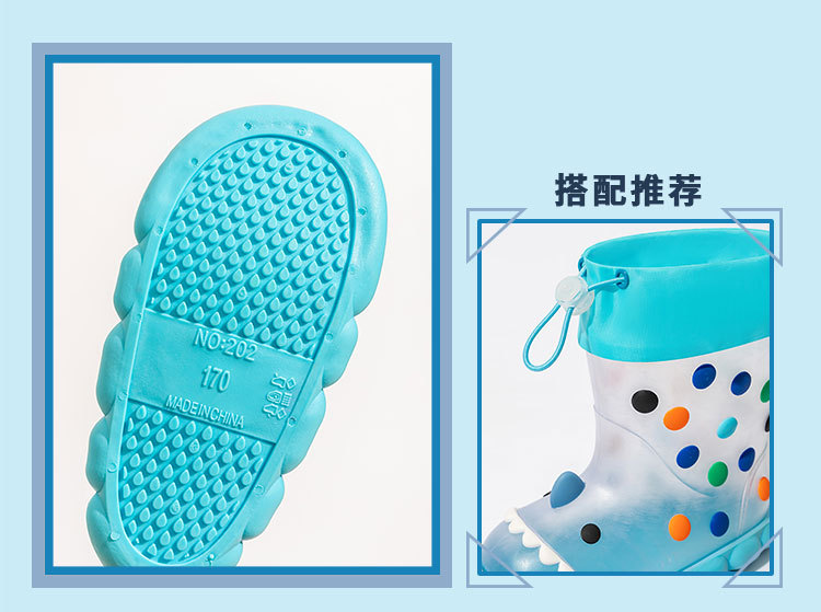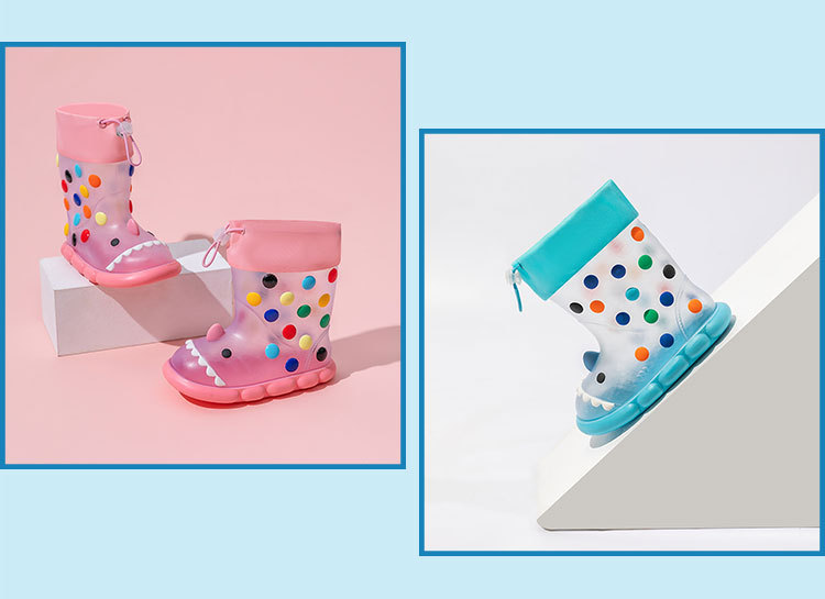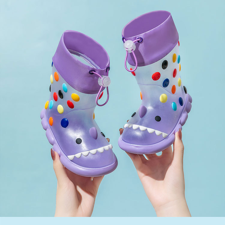 소년 소녀를위한 사이버 축하 투명 장화 무지개 콩 상어 어린이 장화 미끄럼 방지 외부 착용 비오는 아기 만화 물 신발