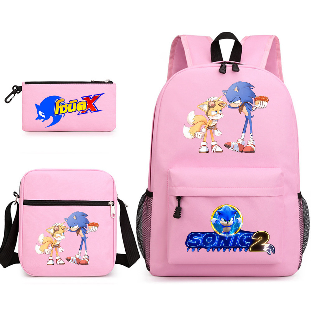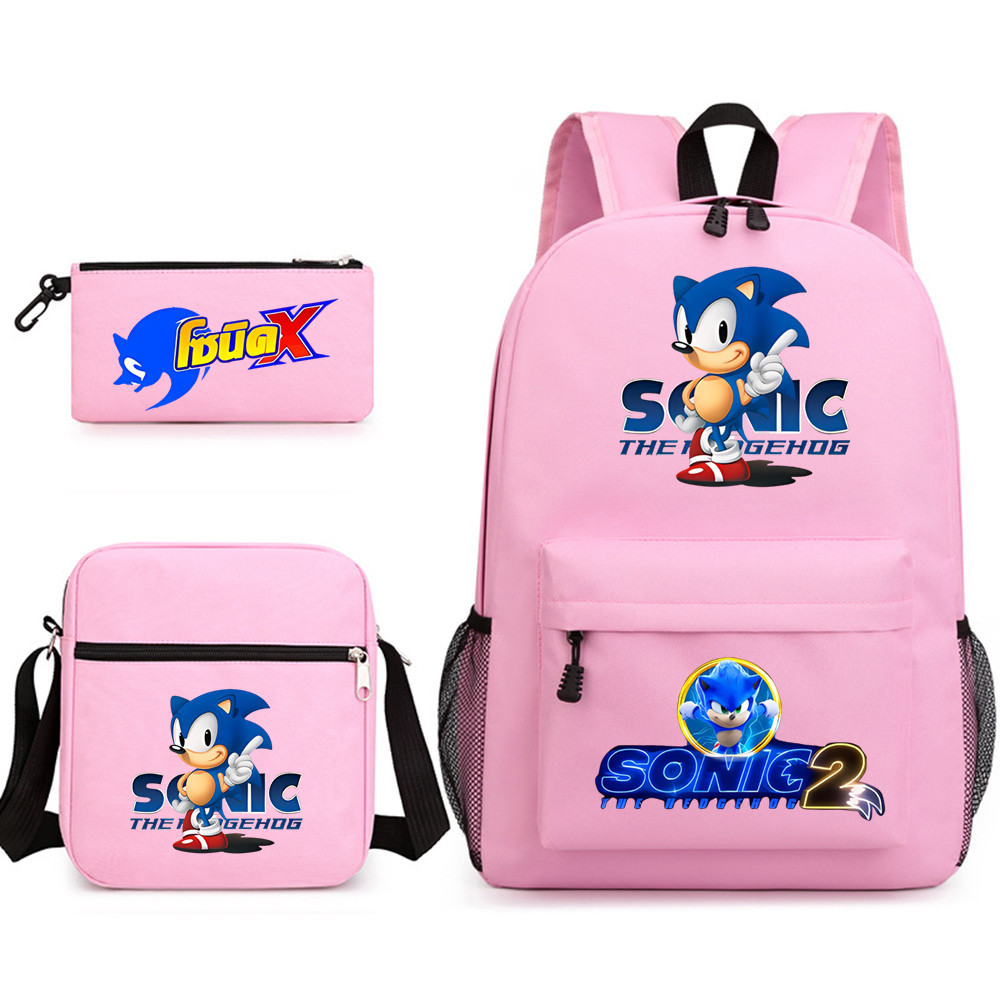 소닉 3 조각 세트 스쿨백 만화 캐주얼 배낭 남성과 여성 학생 배낭 인쇄 대용량 야외 배낭