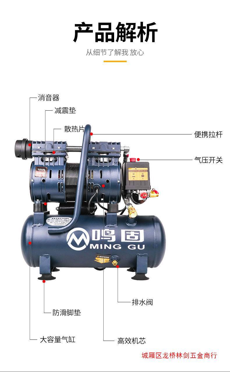 침묵하는 공기 압축기 공기 펌프 220V 작은 알루미늄 와이어 오일 프리 공기 압축기 목공 스프레이 페인트 공기 펌프스토어 가기