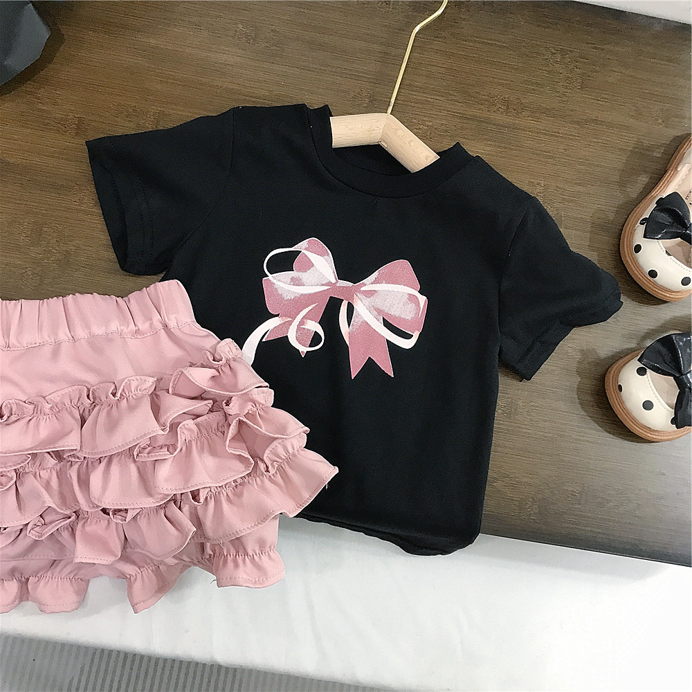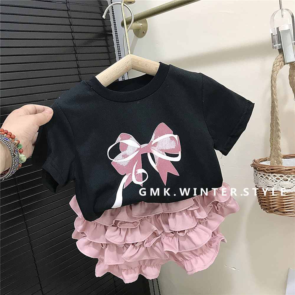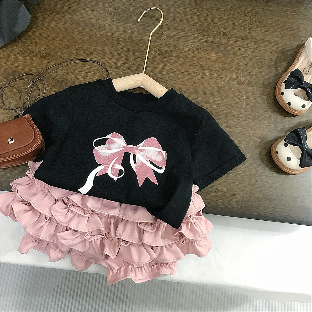 한국 아동복 여름 새로운 소녀 세트 중소 어린이 유행 티셔츠 외국 스타일 소녀 달콤한 케이크 스커트 대외 무역스토어 가기