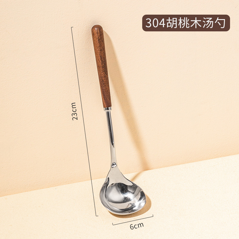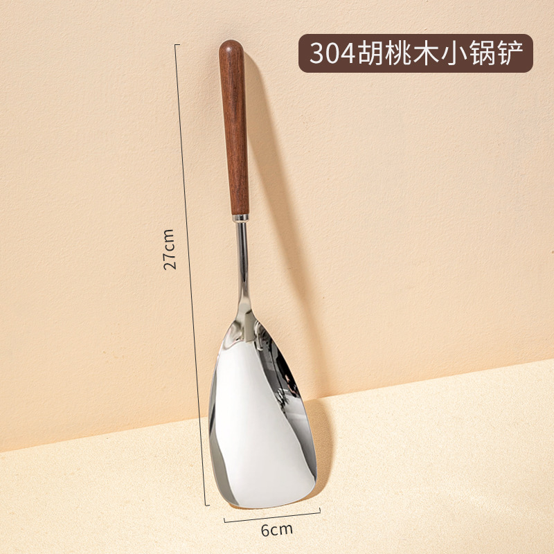 가정용 미니 작은 주걱 304 스테인레스 스틸 호두 나무 손잡이 가정용 튀김 주걱 요리 스몰 사이즈 주방 용품 주걱