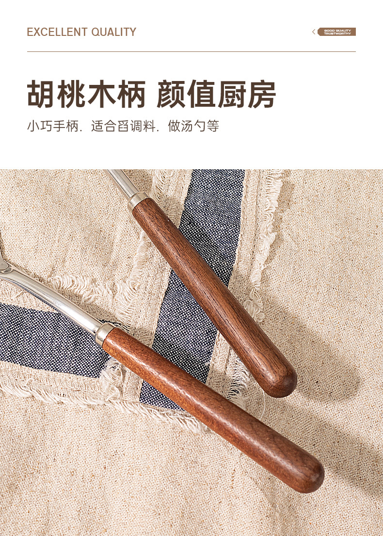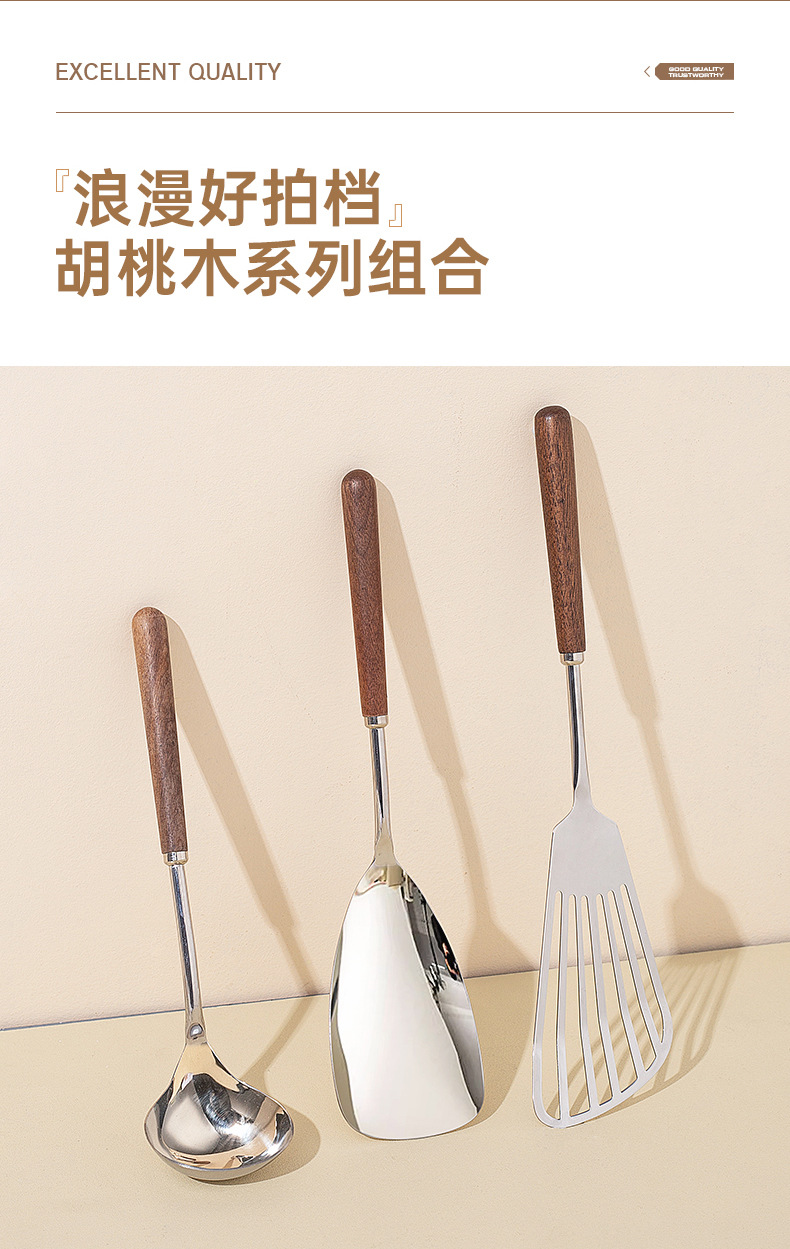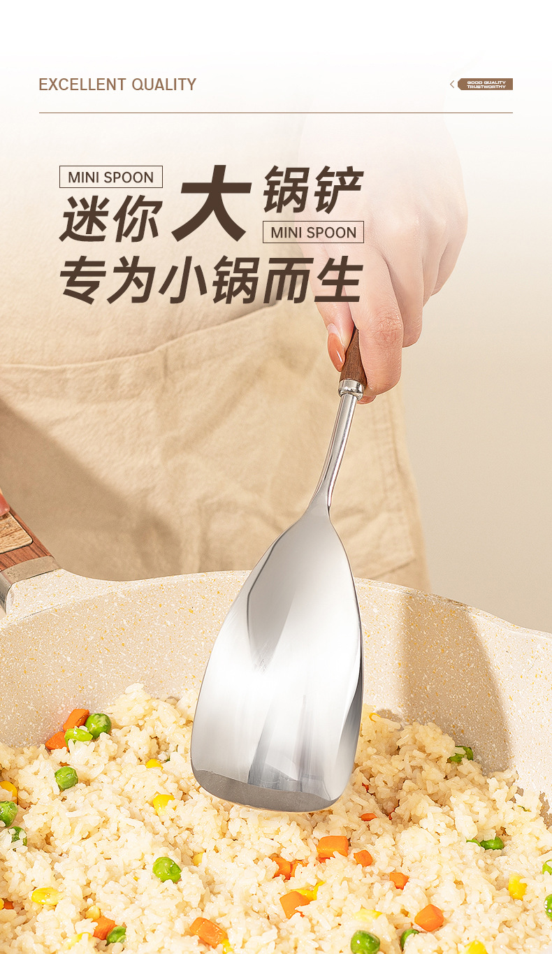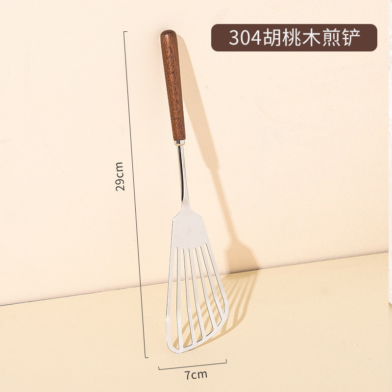 가정용 미니 작은 주걱 304 스테인레스 스틸 호두 나무 손잡이 가정용 튀김 주걱 요리 스몰 사이즈 주방 용품 주걱스토어 가기