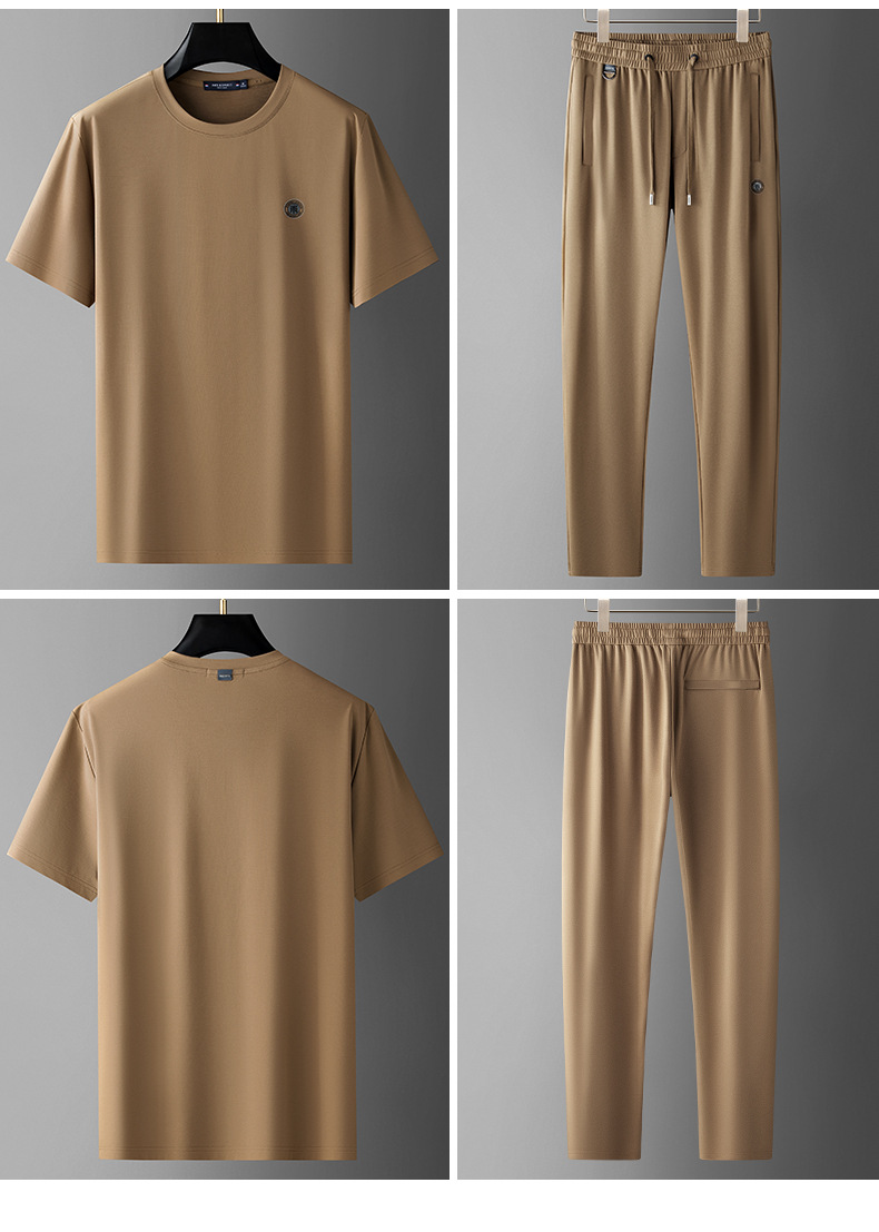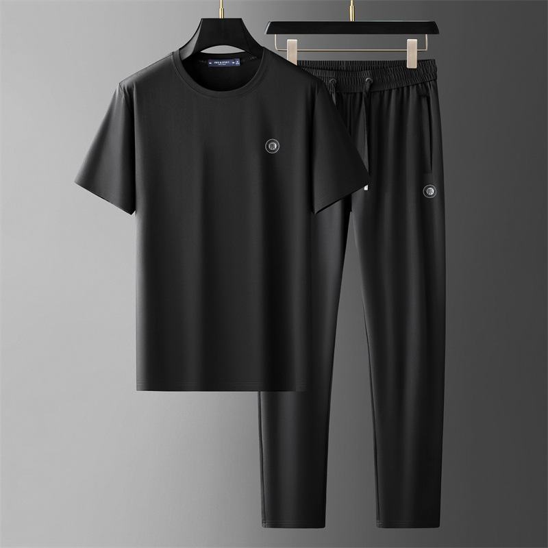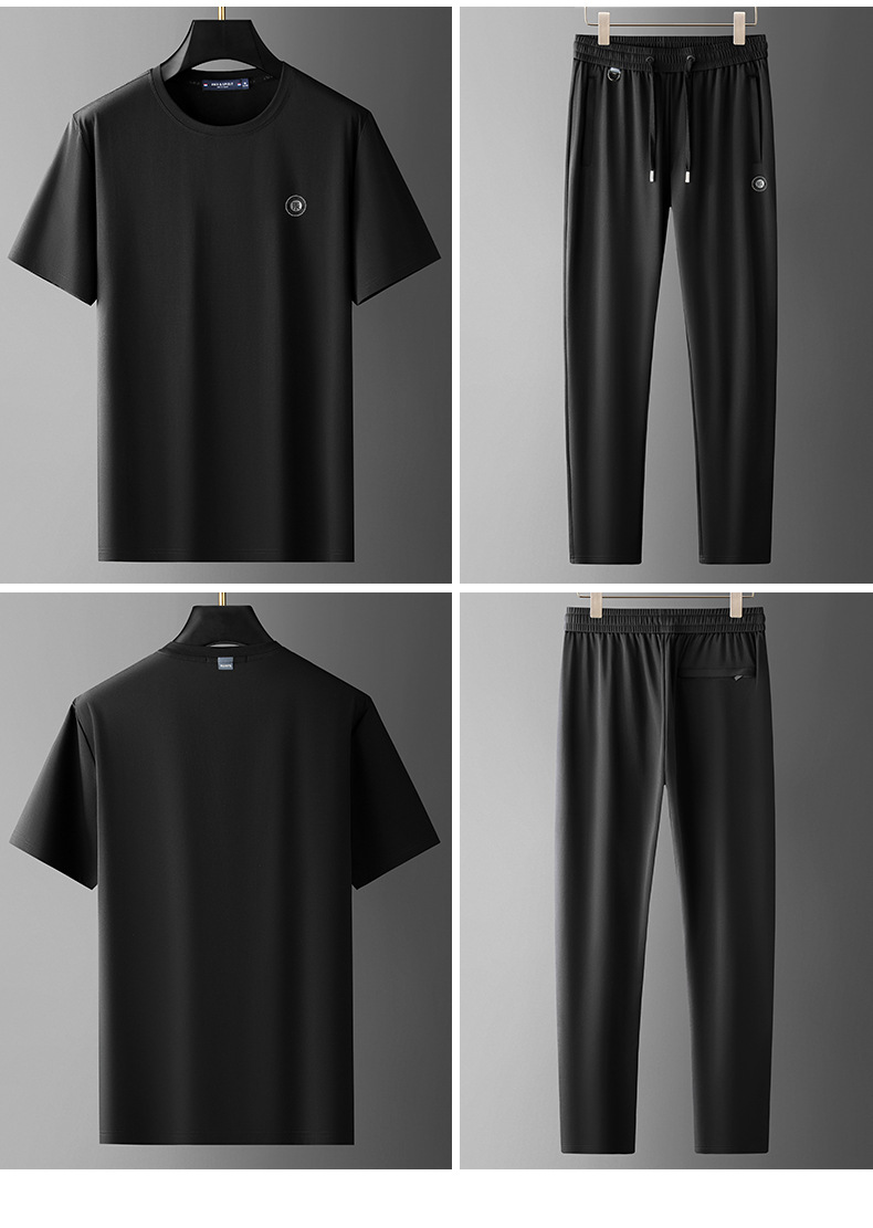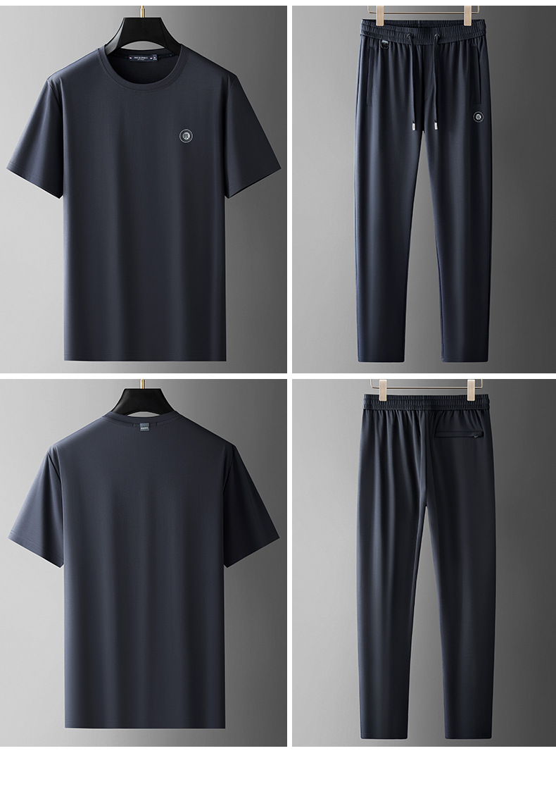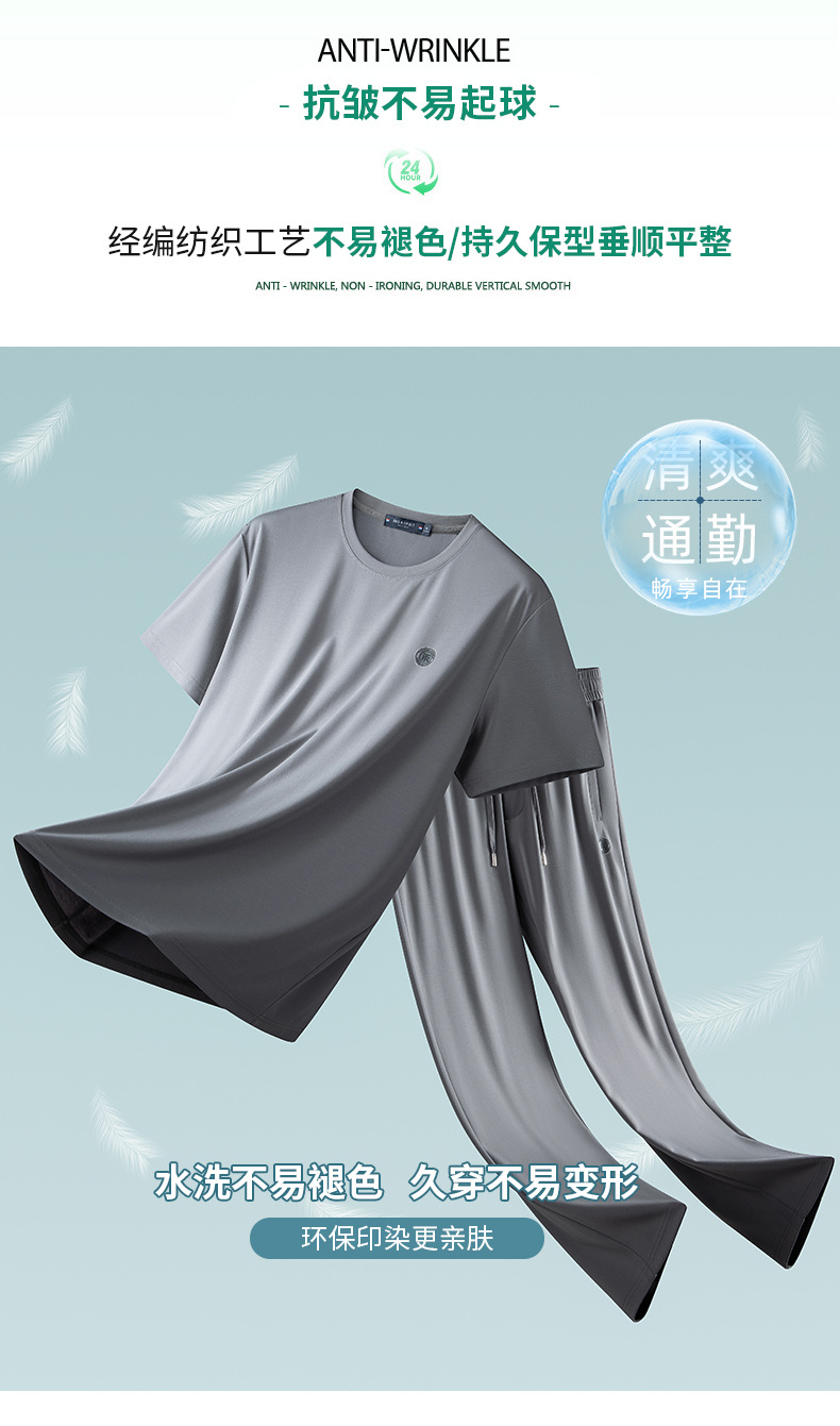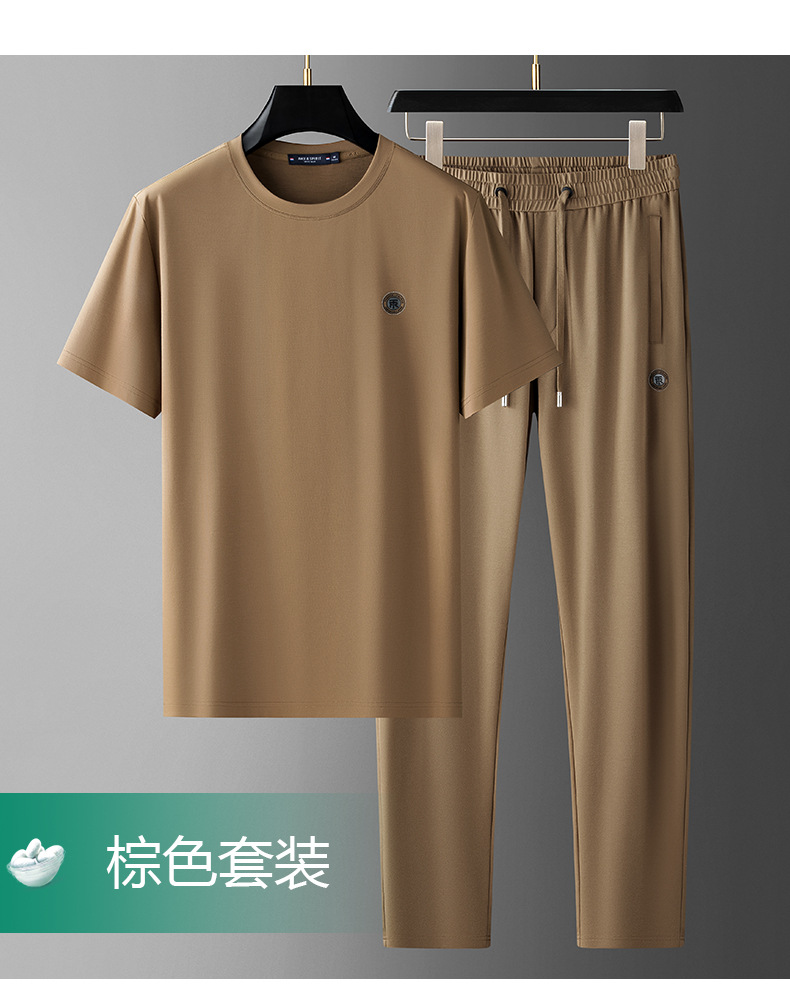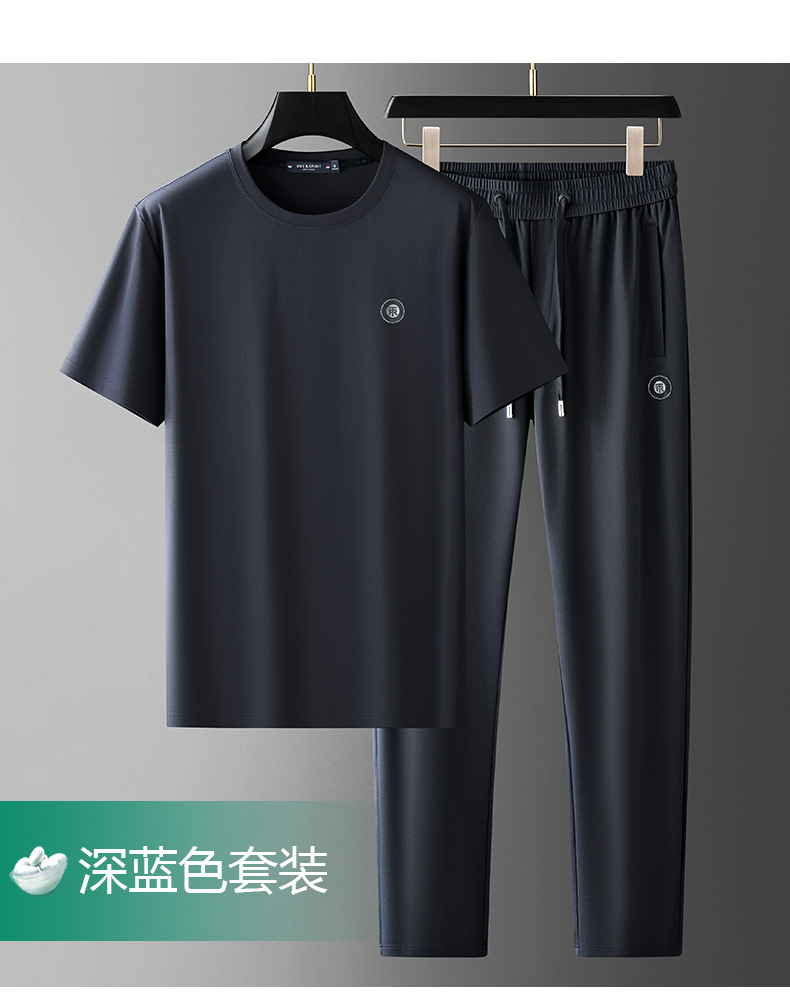 하이 엔드 뽕나무 실크 남성 아이스 실크 짧은 소매 레저 스포츠 세트 남성 여름 중년 아버지 여름 2024 새로운스토어 가기