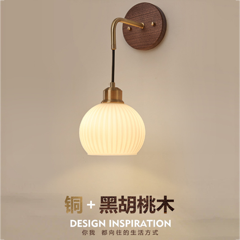 침실 벽 램프 현대 중국 스타일 빈티지 거실 배경 벽 호두 램프 일본 스타일 침묵하는 스타일 침대 옆 교수형 램프