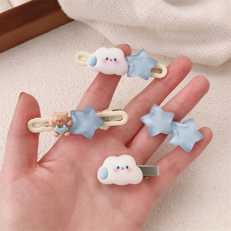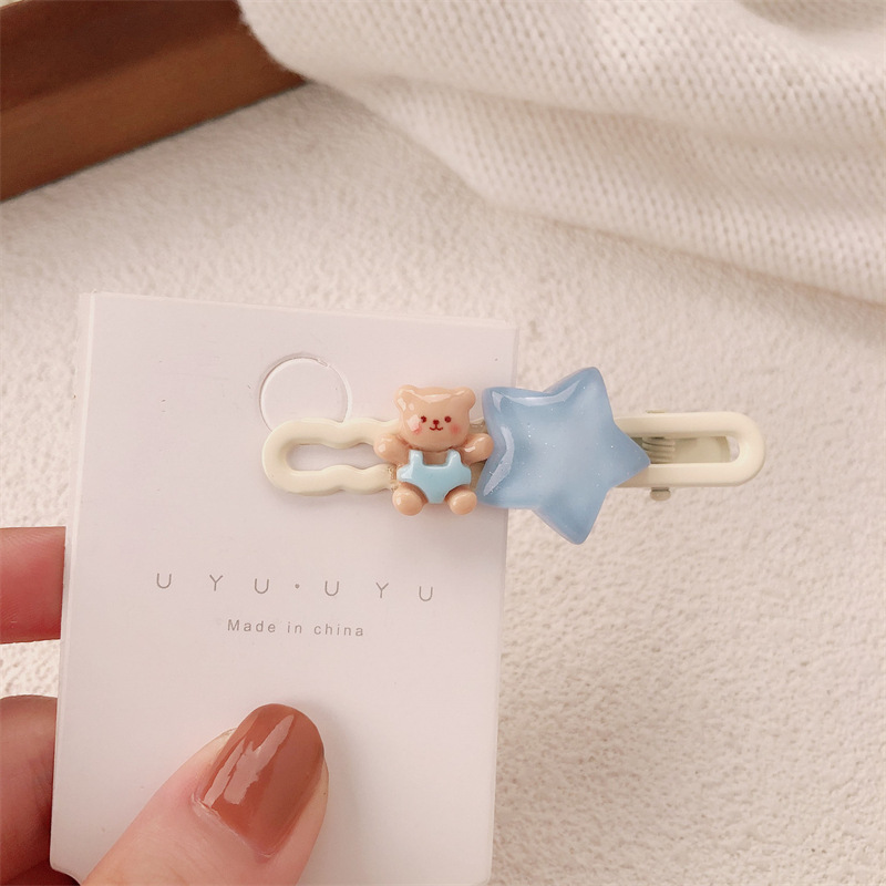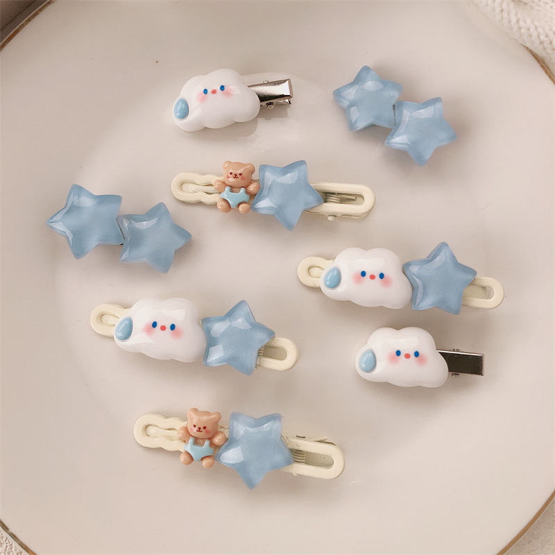 Y2k 도파민 스타 머리핀 귀여운 측면 부러진 머리 앞머리 측면 클립 새로운 파란색 작은 머리핀 헤어 액세서리 도매