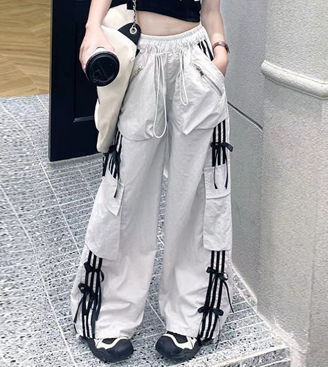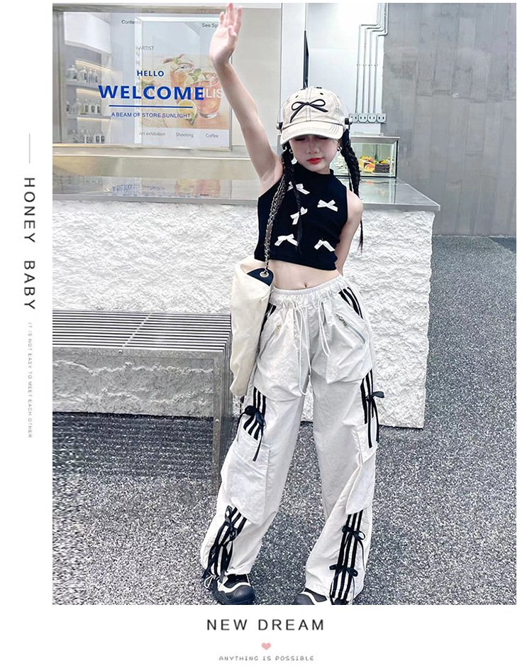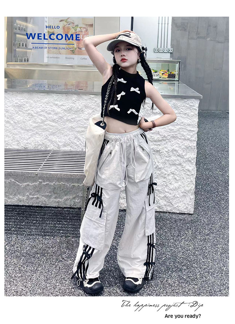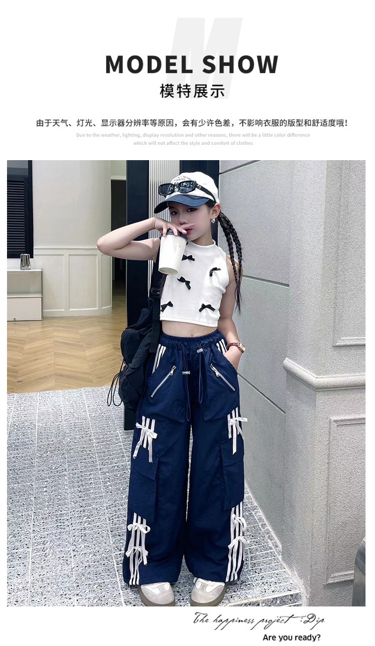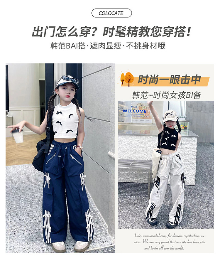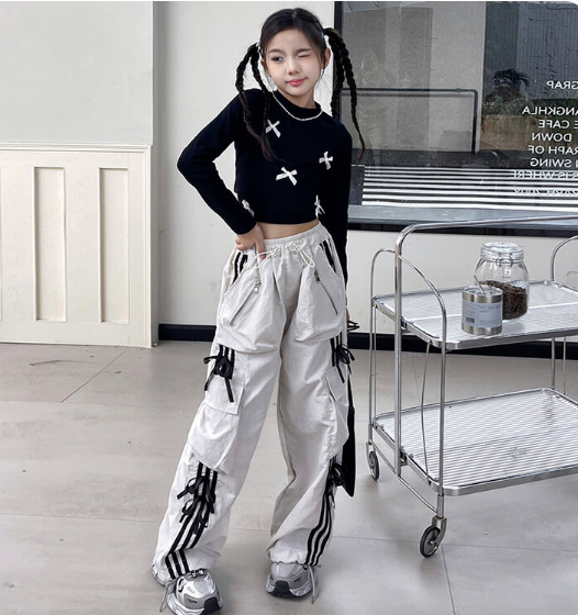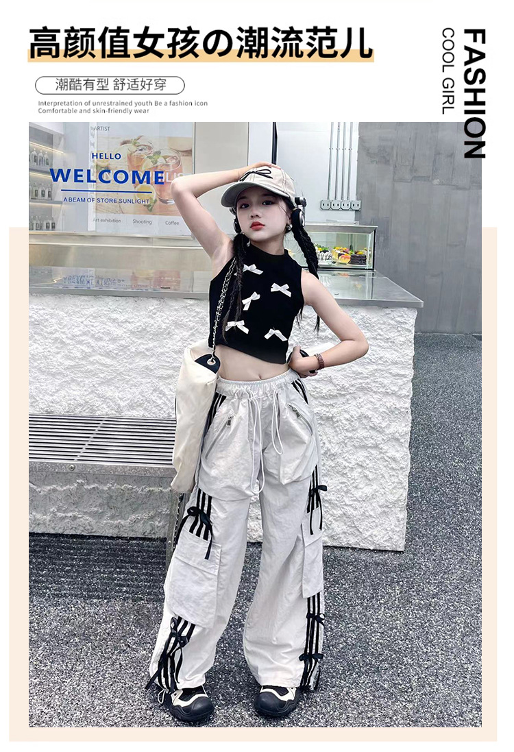 소녀 작업복 여름 2024 새로운 도착 캐주얼 힙합 올매치 느슨한 트렌디 쿨 롱 바지 와이드 레그 바지 웨스턴 스타일스토어 가기
