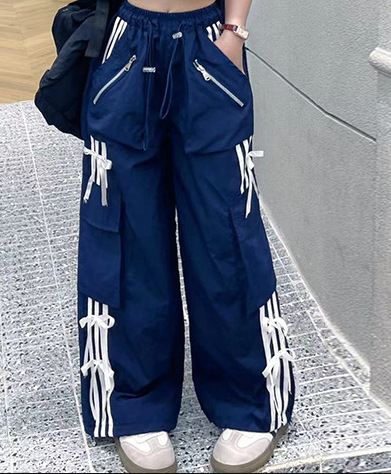 소녀 작업복 여름 2024 새로운 도착 캐주얼 힙합 올매치 느슨한 트렌디 쿨 롱 바지 와이드 레그 바지 웨스턴 스타일