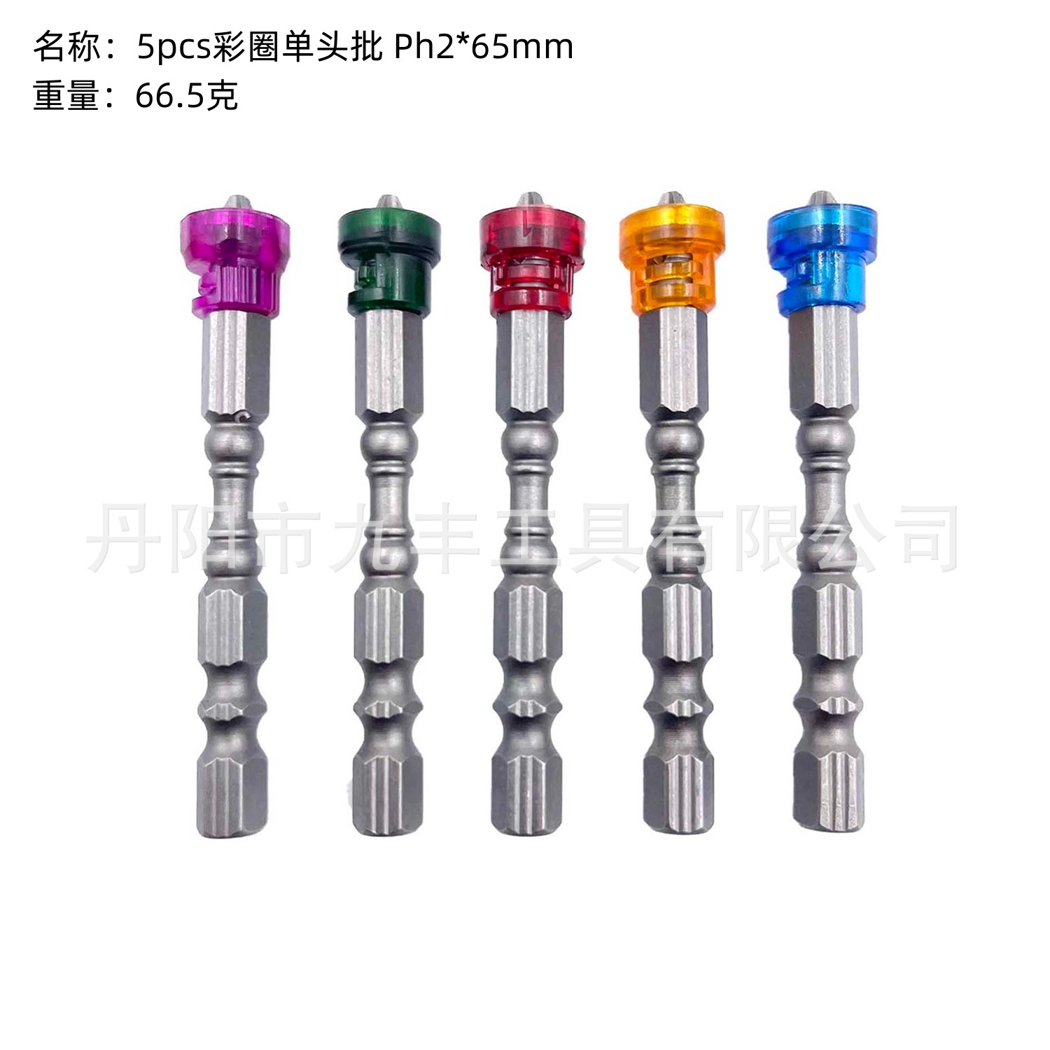5개 세트 컬러풀 자석 싱글 헤드 PH2 십자 드라이버 비트 S2 합금강 윈드 드라이버 비트 65mm 나사