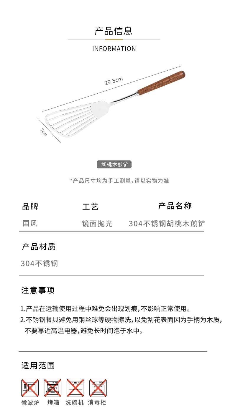 304 스테인리스 스틸 나무 손잡이가 있는 나비형 주걱, 가정용 주방용 주걱, 볶음용 작은 주걱, 팬케이크 주걱, 생선 튀김용 주걱스토어 가기