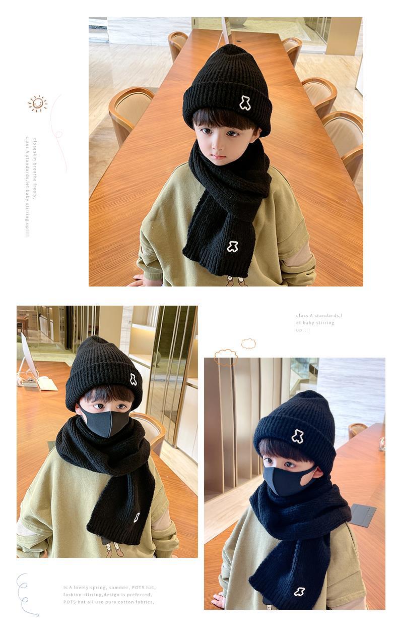 가을과 겨울 어린이 모자 스카프 세트 서양식 따뜻한 투피스 세트 소년과 소녀 학생 귀 보호 모자 큰 소년 모자스토어 가기