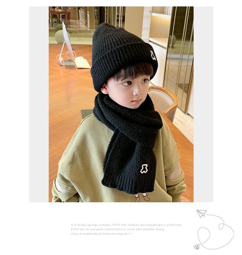 가을과 겨울 어린이 모자 스카프 세트 서양식 따뜻한 투피스 세트 소년과 소녀 학생 귀 보호 모자 큰 소년 모자