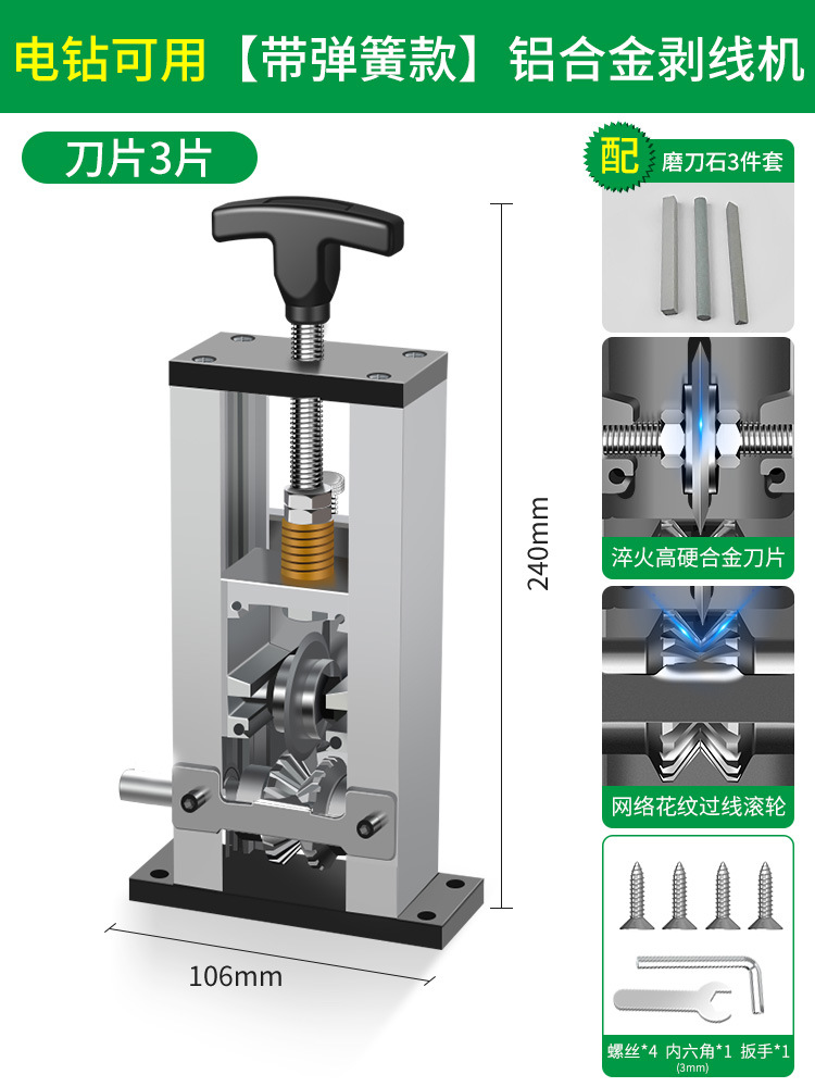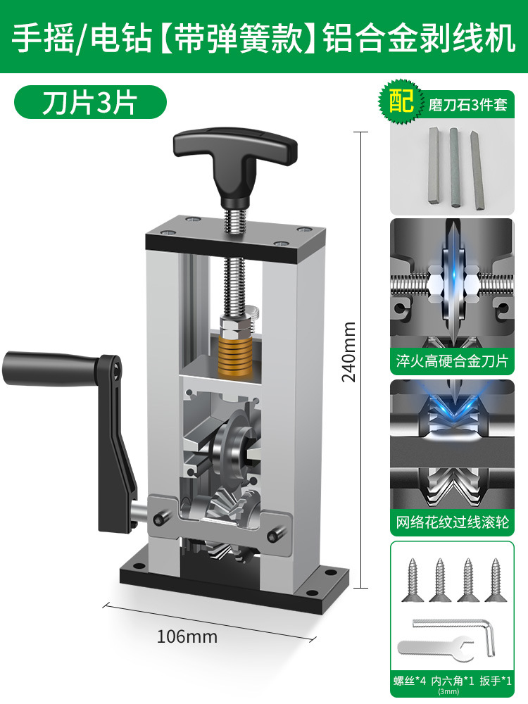 • [핸드 크랭크 + 스프링 장착 전동 드릴] 알루미늄 합금 와이어 스트리핑 기계 - 블레이드 3개
