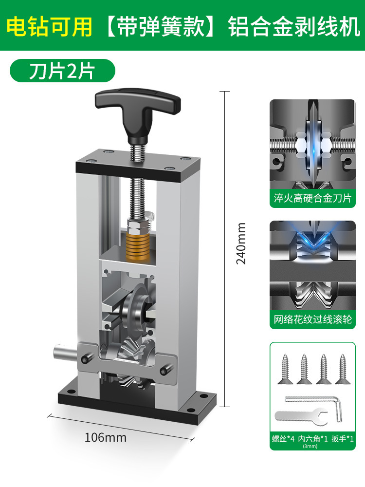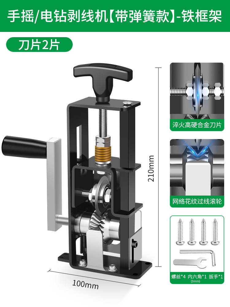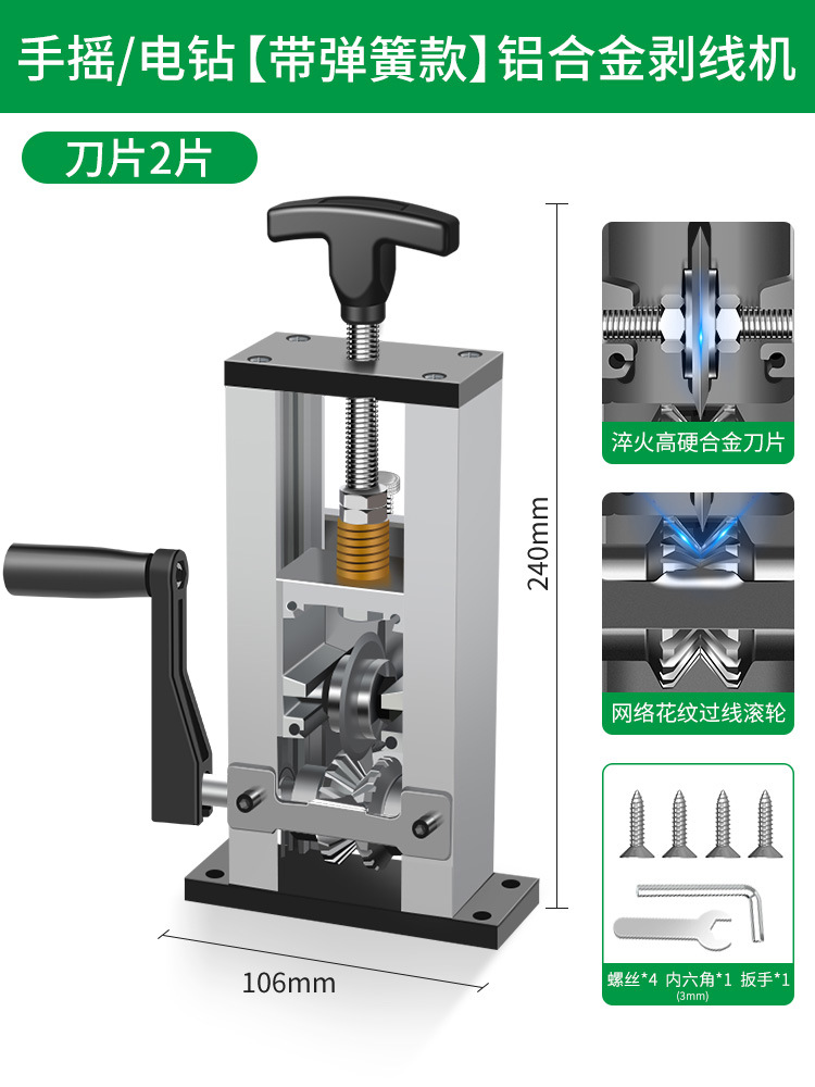 • [핸드 크랭크 + 스프링 장착 전동 드릴] 알루미늄 합금 와이어 스트리핑 기계 - 블레이드 2개