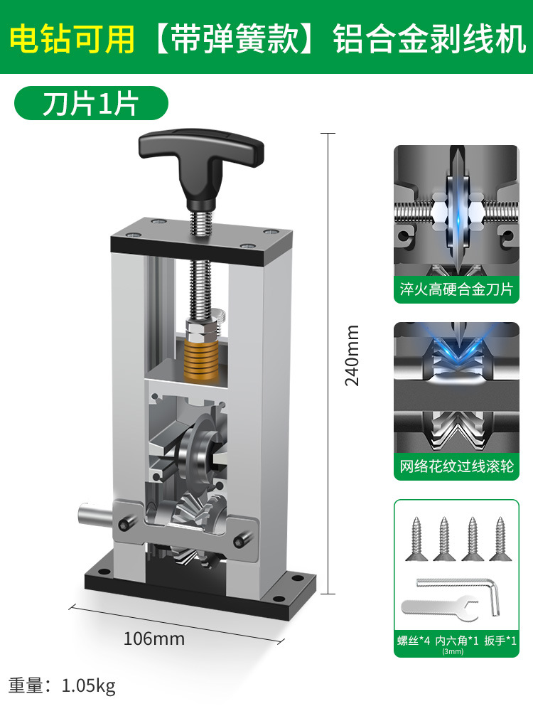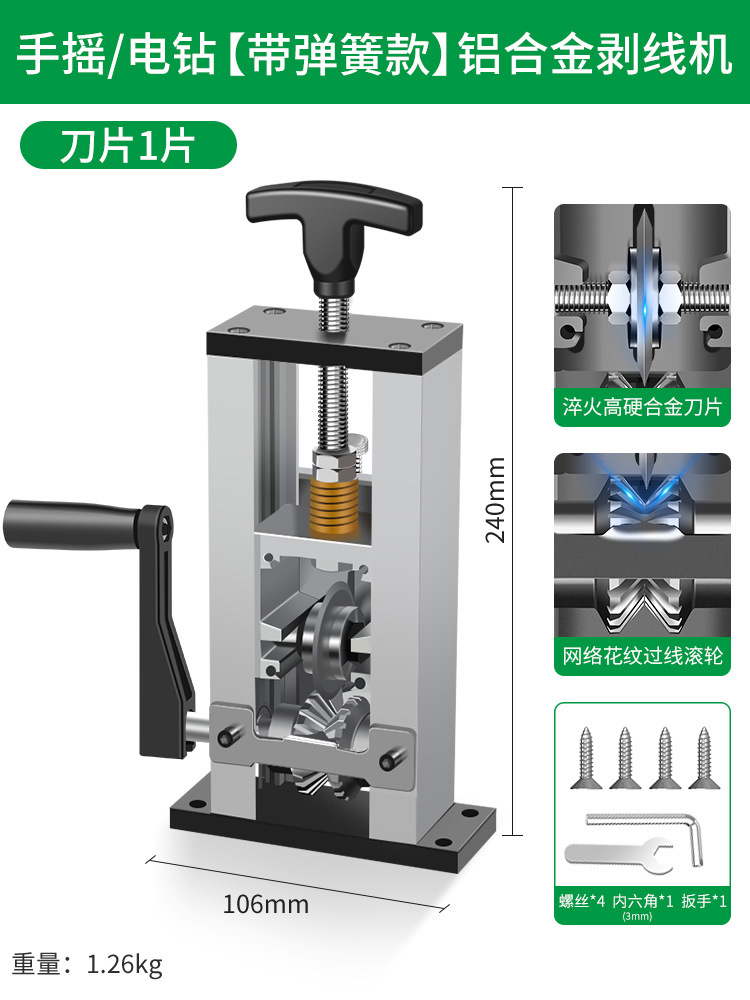 • [핸드 크랭크 + 스프링 장착 전동 드릴] 알루미늄 합금 와이어 스트리핑 기계 - 블레이드 1개