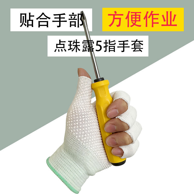 • 13게이지 도트 무늬 화이트 오픈 핑거 장갑
