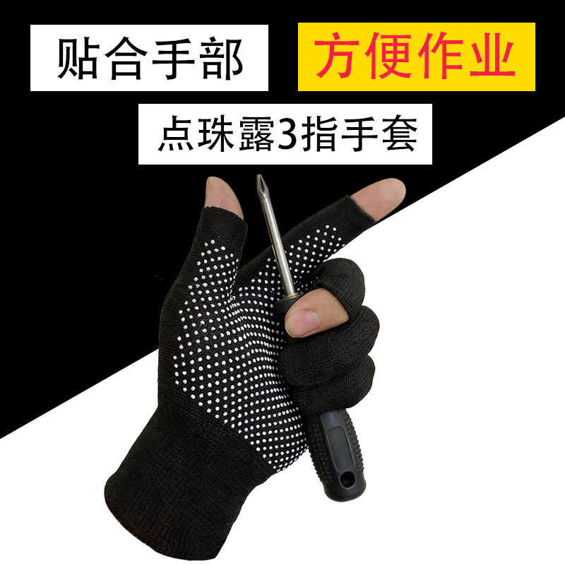 • 13게이지 도트 비즈 블랙 노출 3손가락 장갑