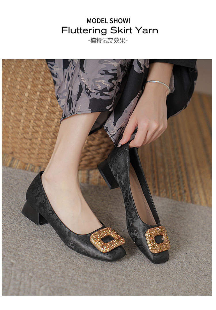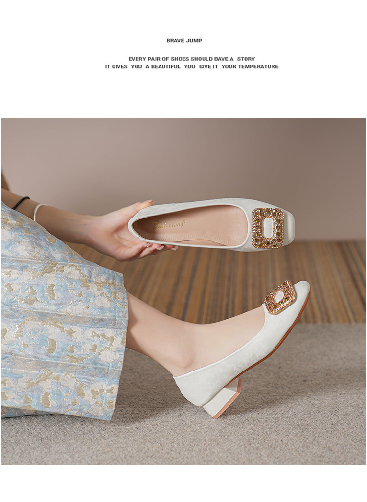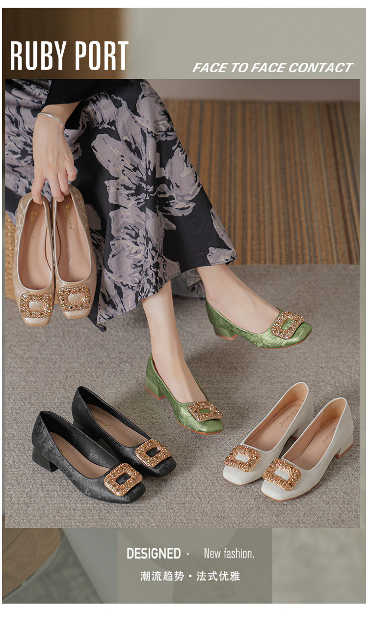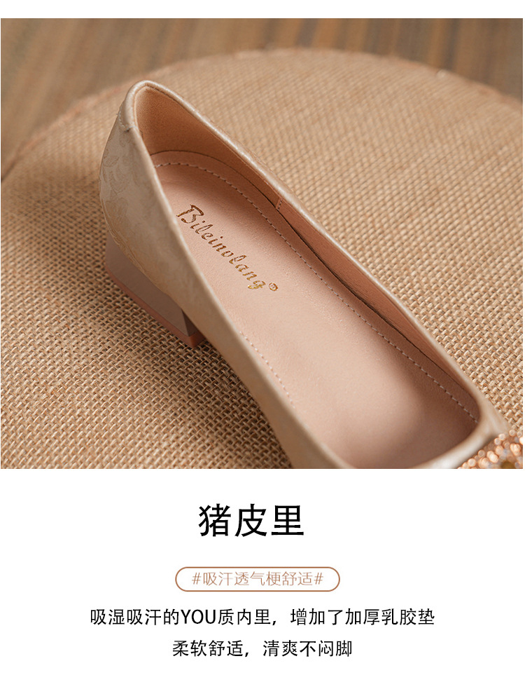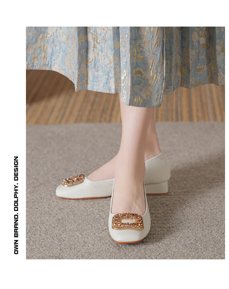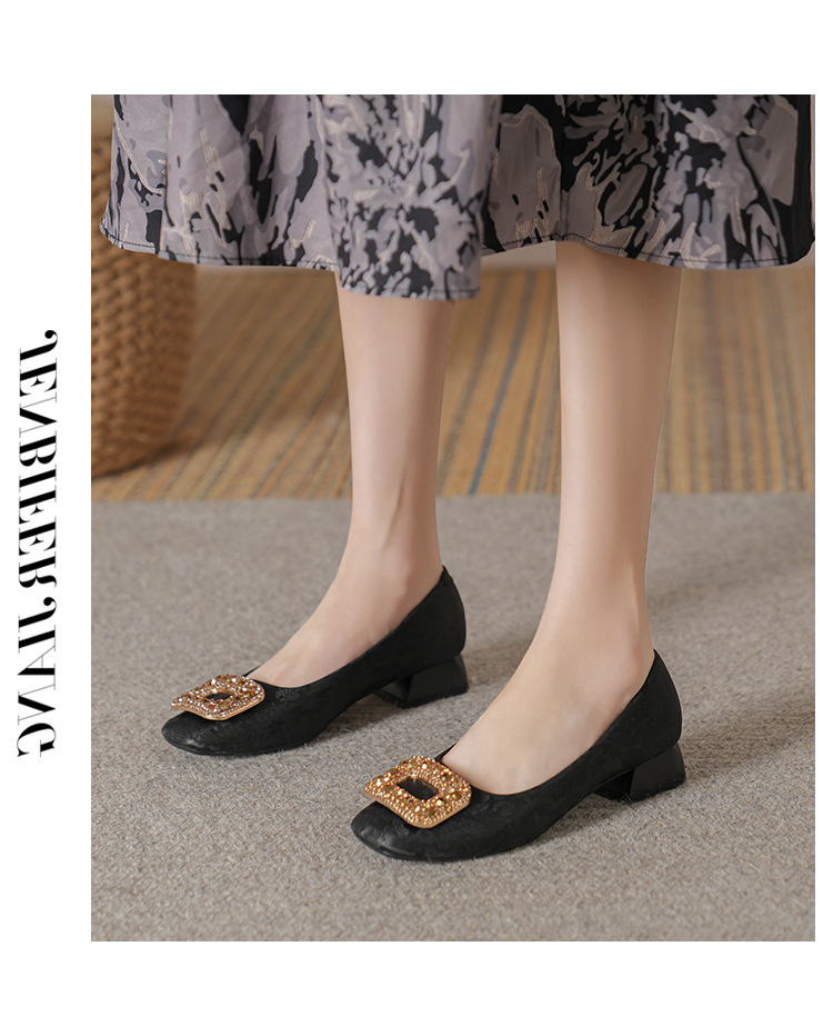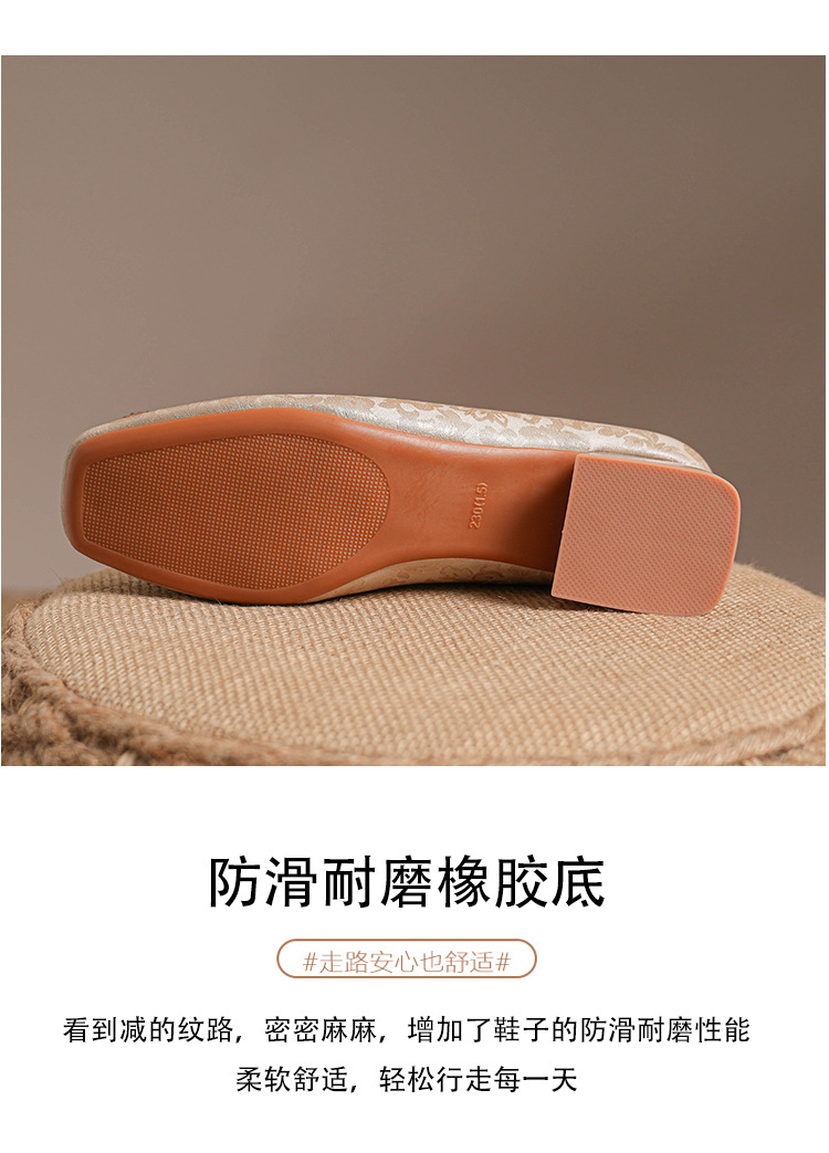 2023 새로운 프랑스 스타일 낮은 발 뒤꿈치 광장 발가락 얕은 입 싱글 신발 여성의 부드러운 바닥 플랫 신발 디자인 센스 틈새 봄과 가을 패션스토어 가기