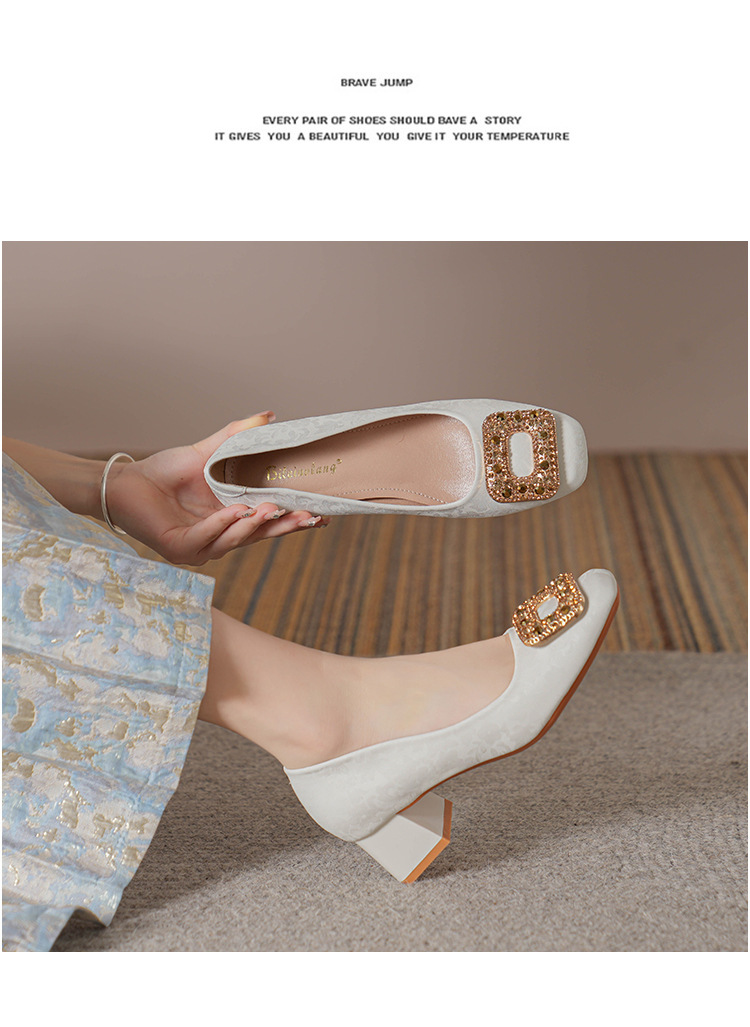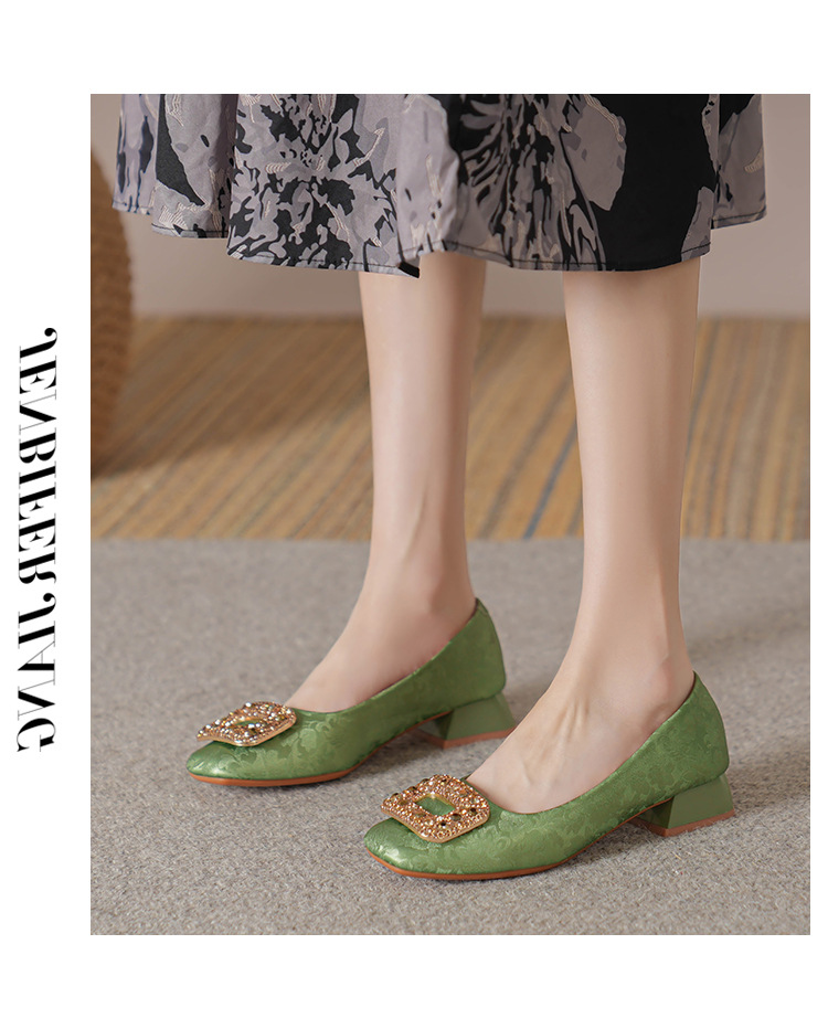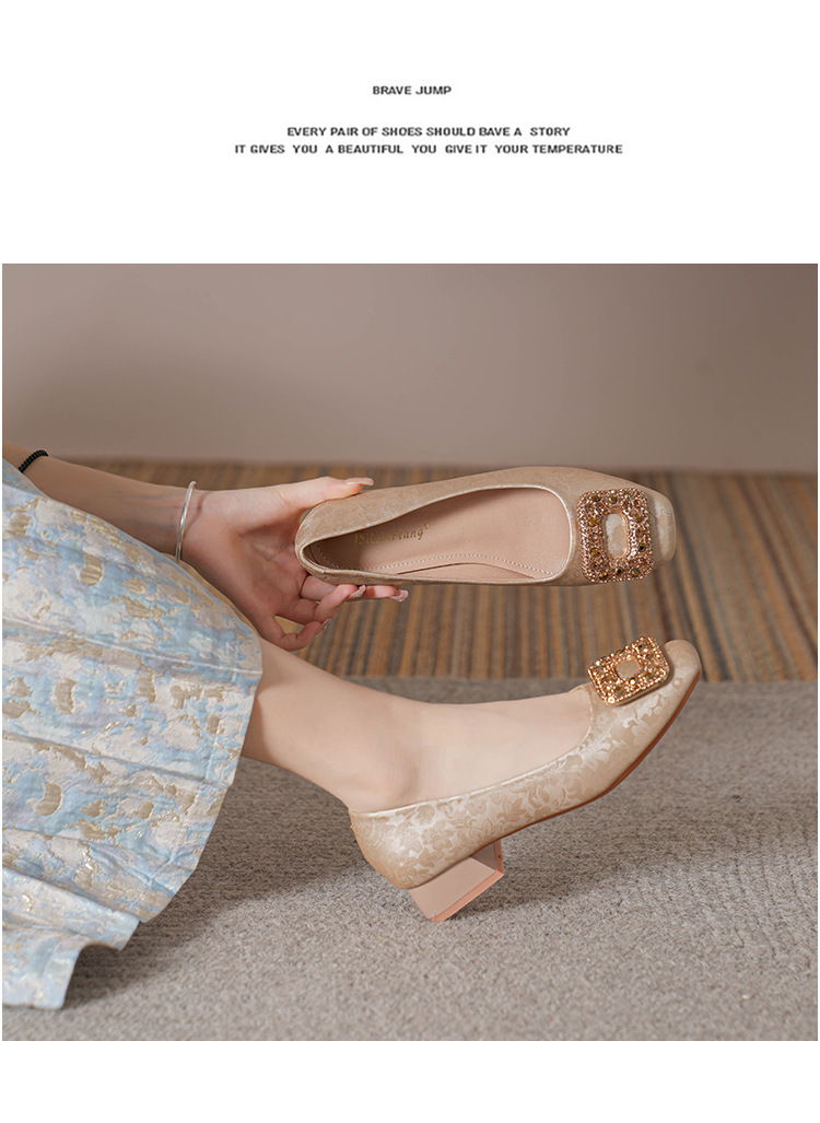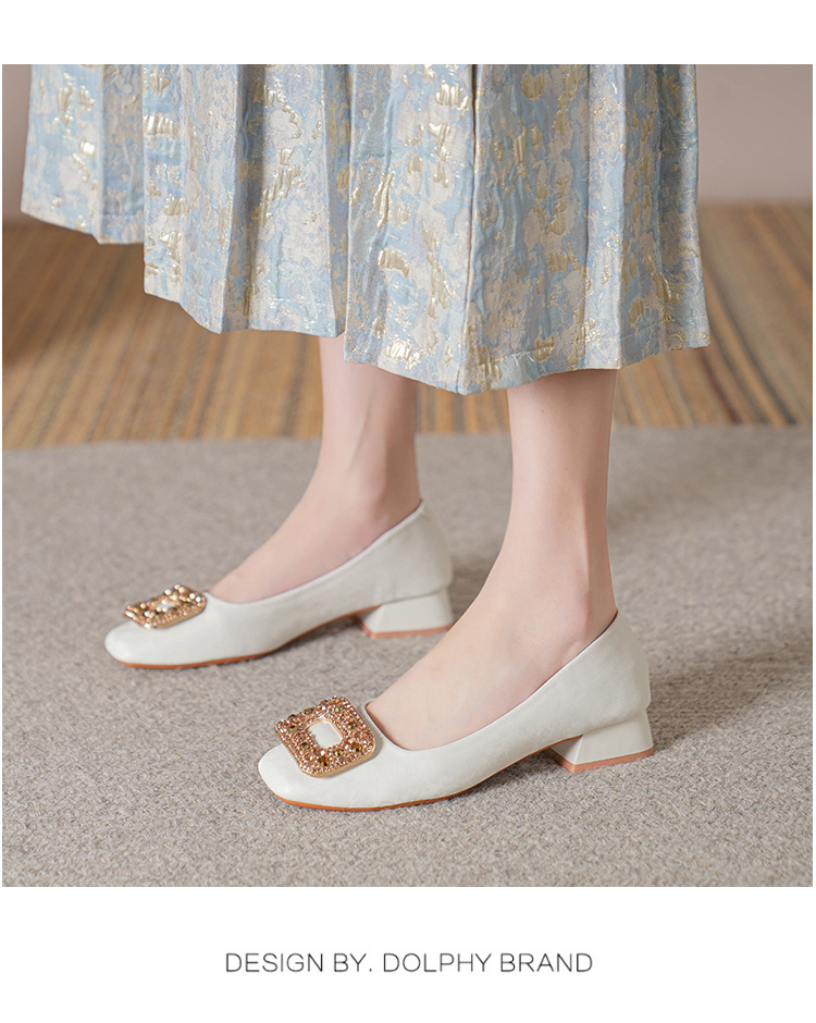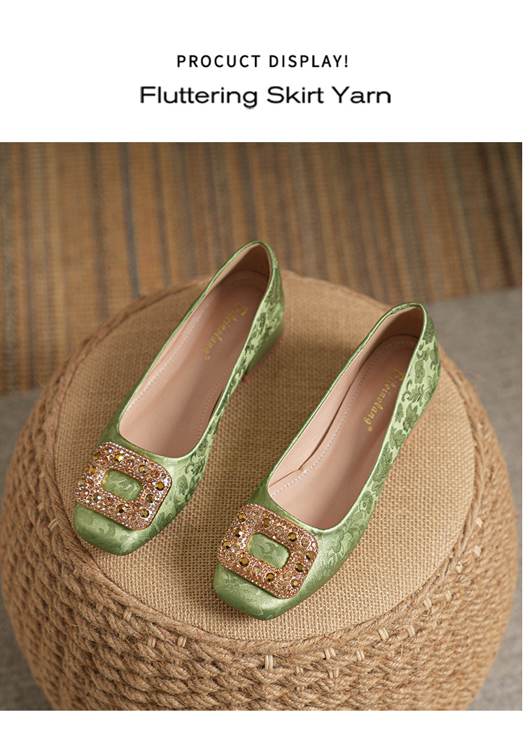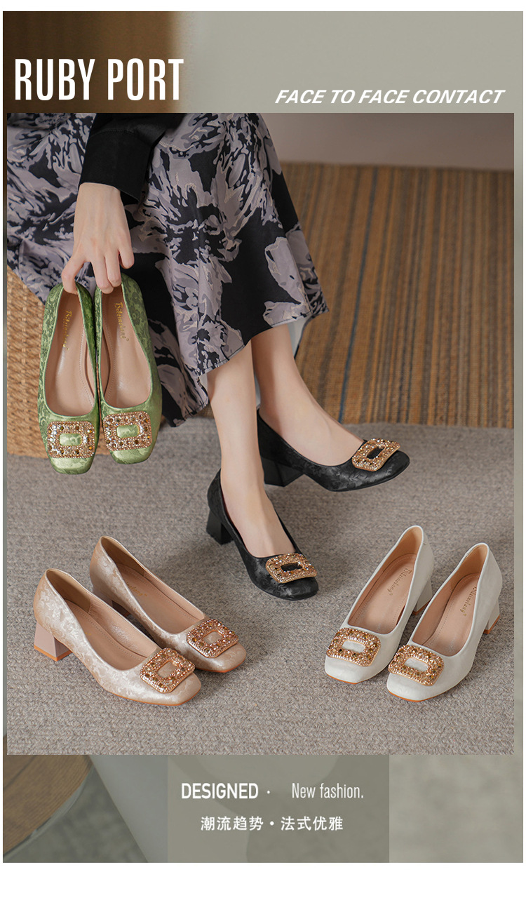 2023 새로운 프랑스 스타일 낮은 발 뒤꿈치 광장 발가락 얕은 입 싱글 신발 여성의 부드러운 바닥 플랫 신발 디자인 센스 틈새 봄과 가을 패션스토어 가기