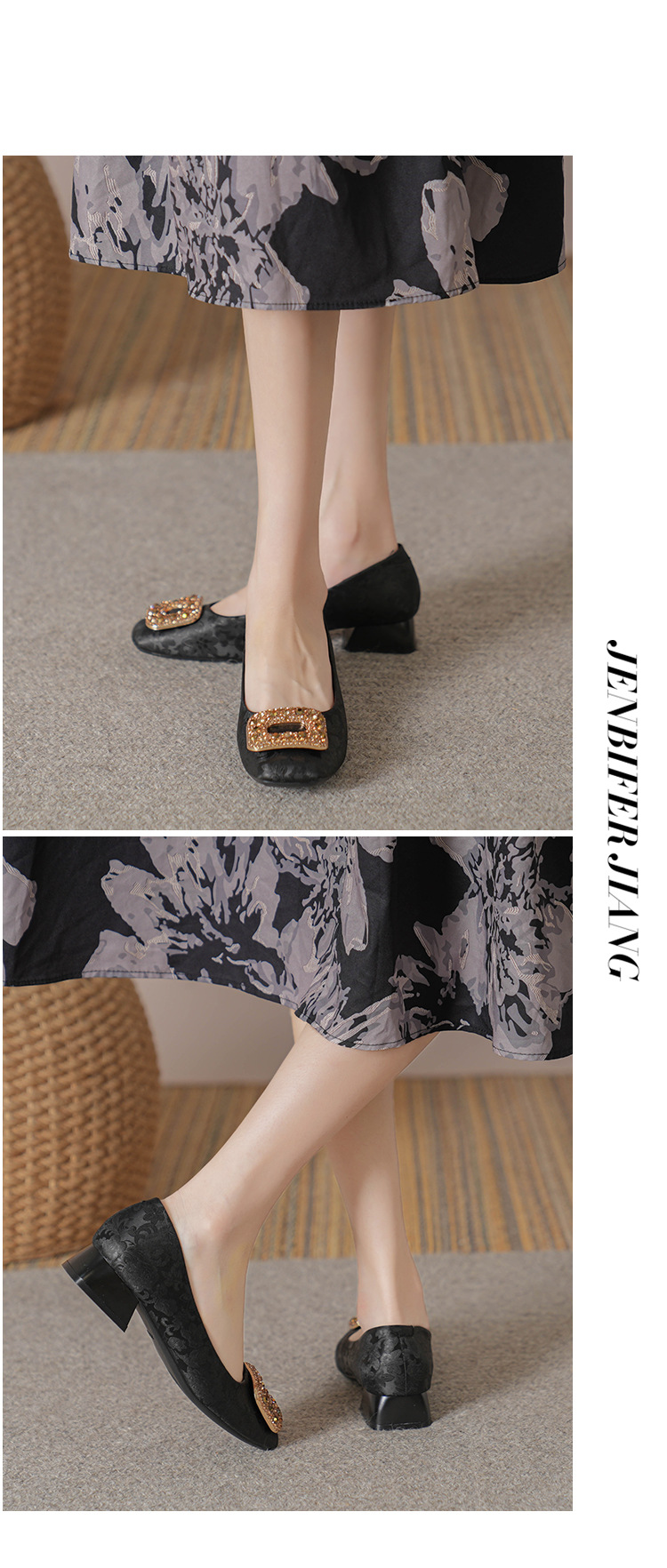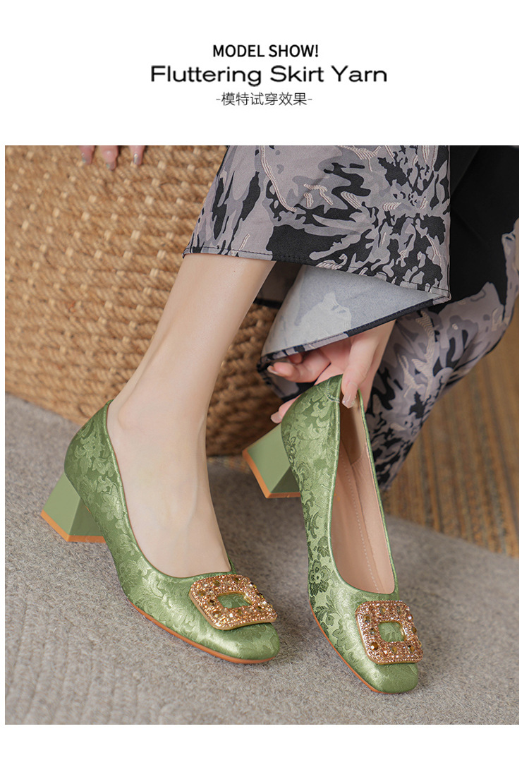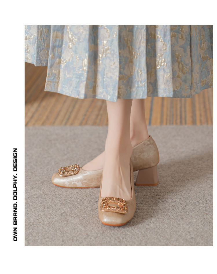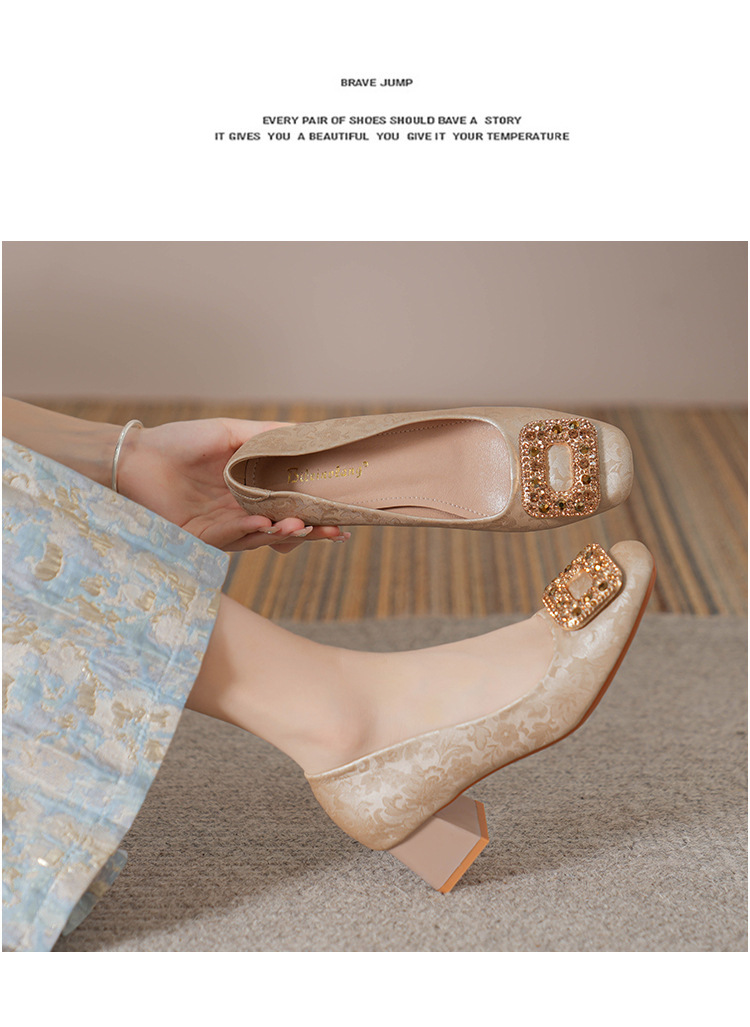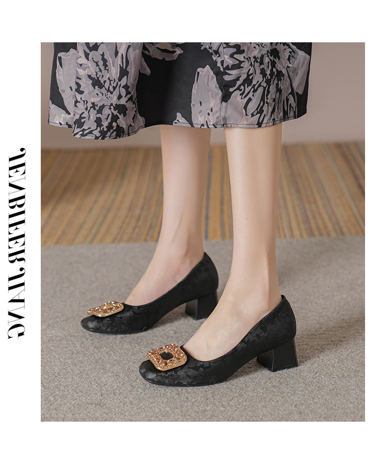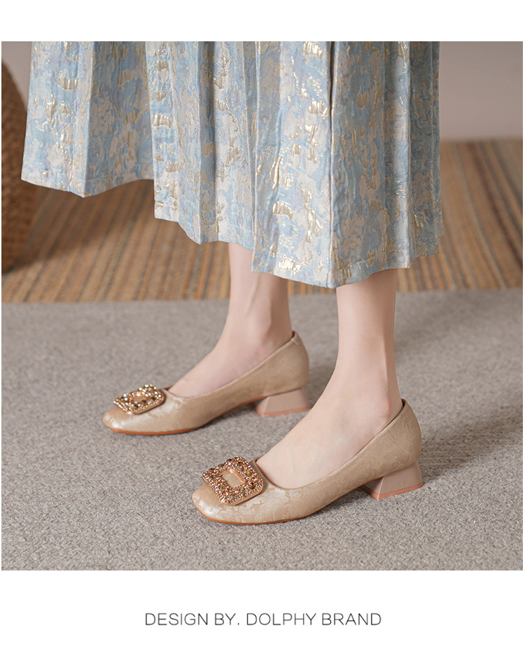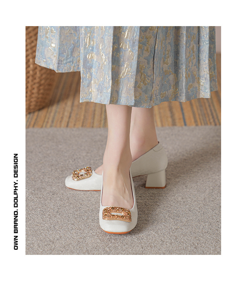 2023 새로운 프랑스 스타일 낮은 발 뒤꿈치 광장 발가락 얕은 입 싱글 신발 여성의 부드러운 바닥 플랫 신발 디자인 센스 틈새 봄과 가을 패션스토어 가기