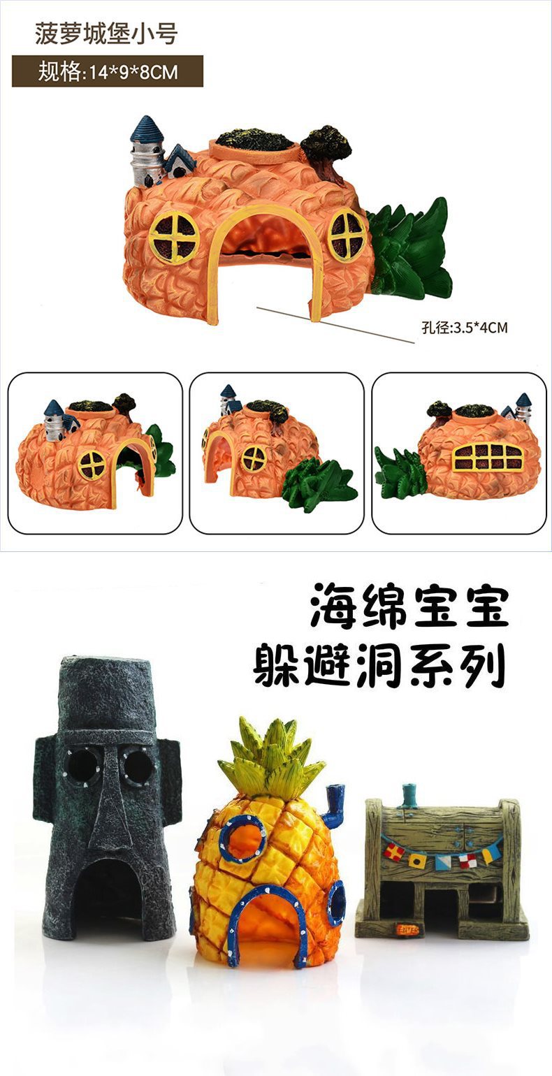 수족관 풍경 파인애플 하우스 회피 동굴 스폰지 밥의 집 물고기 탱크 풍경 만화 장식품 물고기와 새우 회피 하우스스토어 가기