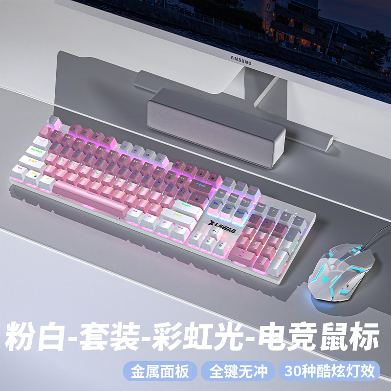 • 핑크 화이트 세트-무지개 빛 게임 마우스