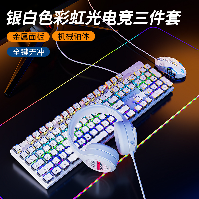 • 화이트 업그레이드 [실제 기계 3 피스 세트] 전자 스포츠 게임 마우스 게임 헤드셋