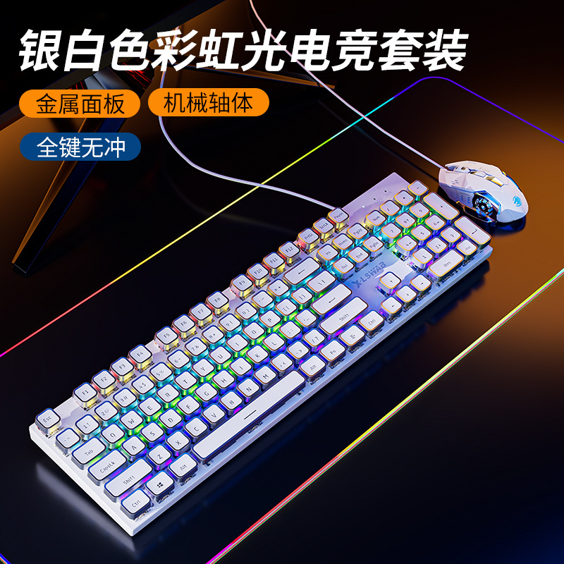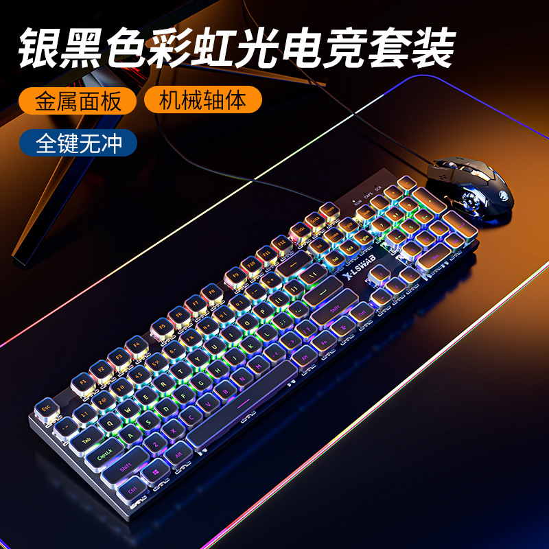 E104 기계식 키보드 유선 마우스 세트 레트로 노트북 e스포츠 게임 전용 청축/블랙축