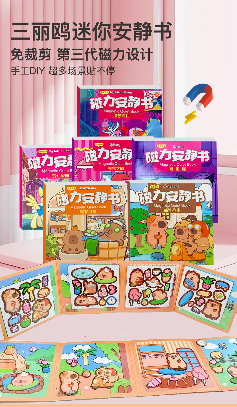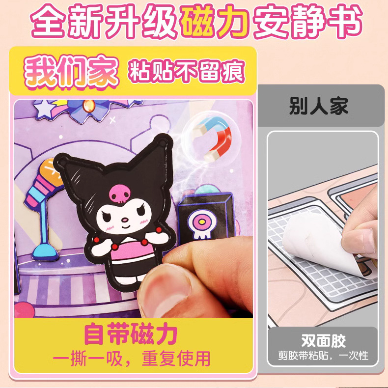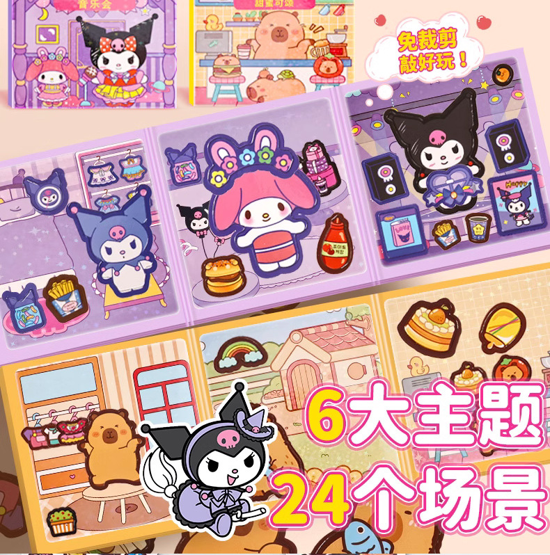 새로운 산리오 자기 조용한 책 소녀 무료 컷 공주 아이들 창조적 인 DIY 장난감 책 휴대용