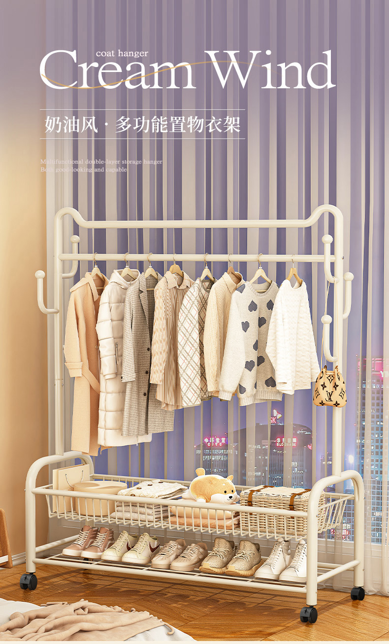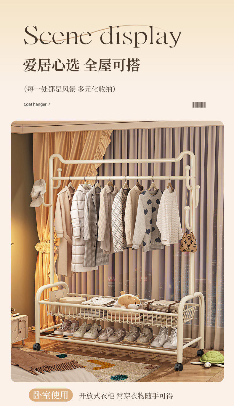 옷걸이 바닥 침실 이동식 발코니 가구 코트 랙 룸 보관 선반 옷 바 아티팩트