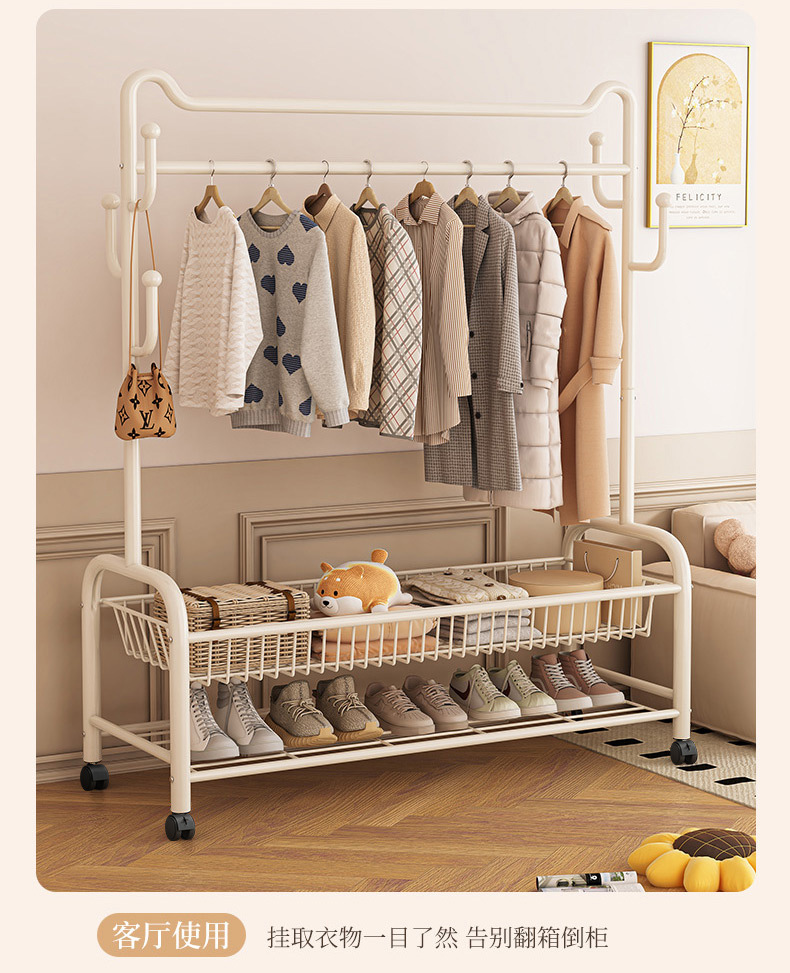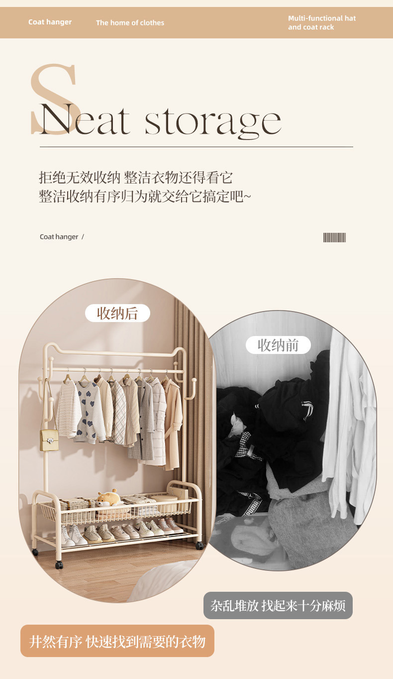 옷걸이 바닥 침실 이동식 발코니 가구 코트 랙 룸 보관 선반 옷 바 아티팩트스토어 가기