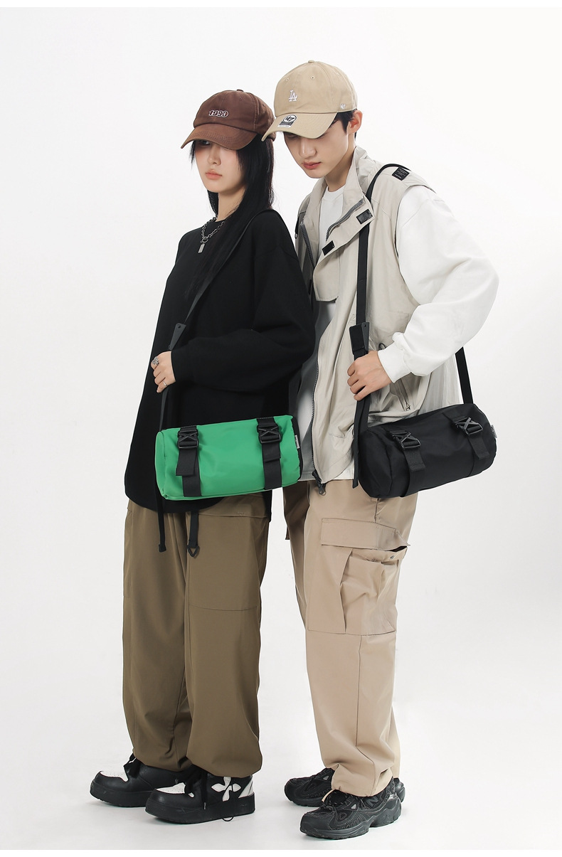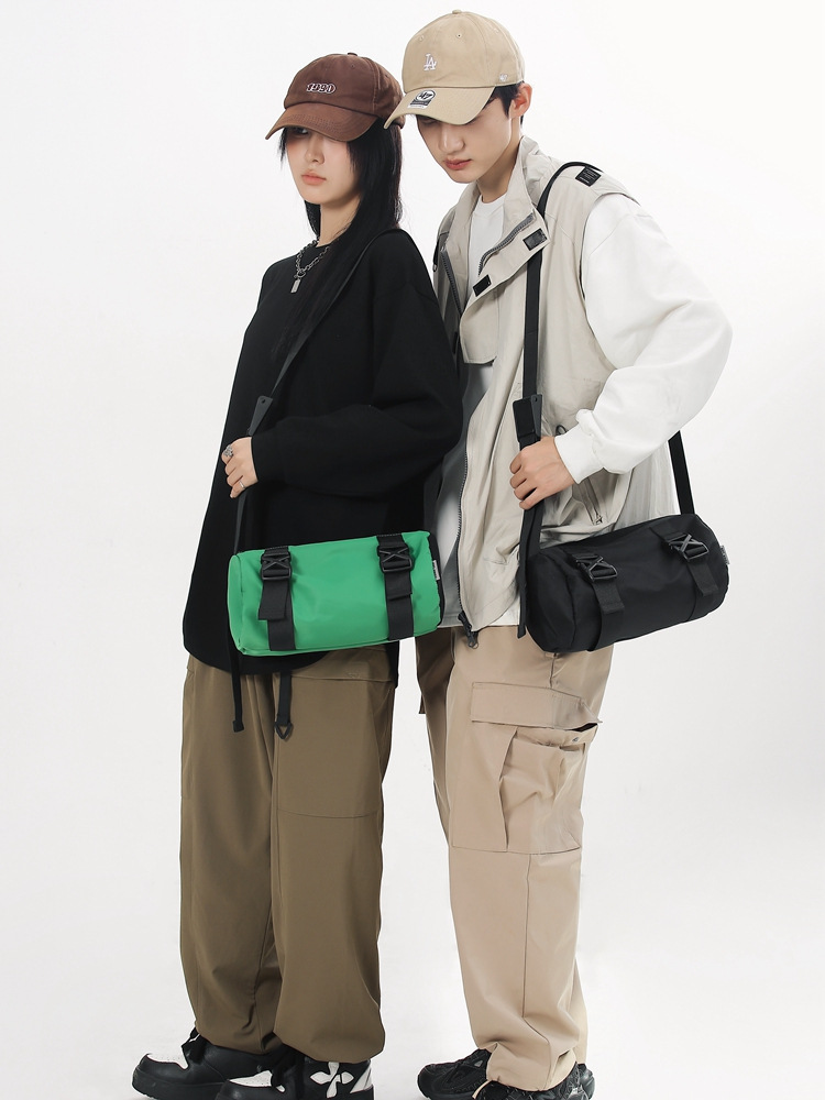 패션 트렌디 한 실린더 크로스 바디 백 트렌디 한 브랜드 숄더 백 스트리트 트렌디 한 힙합 Ins 남성용 가방 일본식 멋진 가방스토어 가기