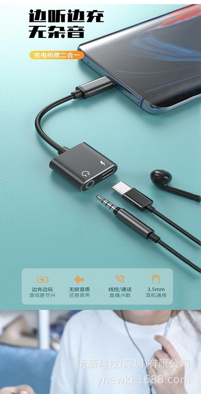 화웨이 샤오미 충전 용 typec 헤드셋 어댑터 2-in -1 컨버터 안드로이드 폰 typec 인터페이스스토어 가기