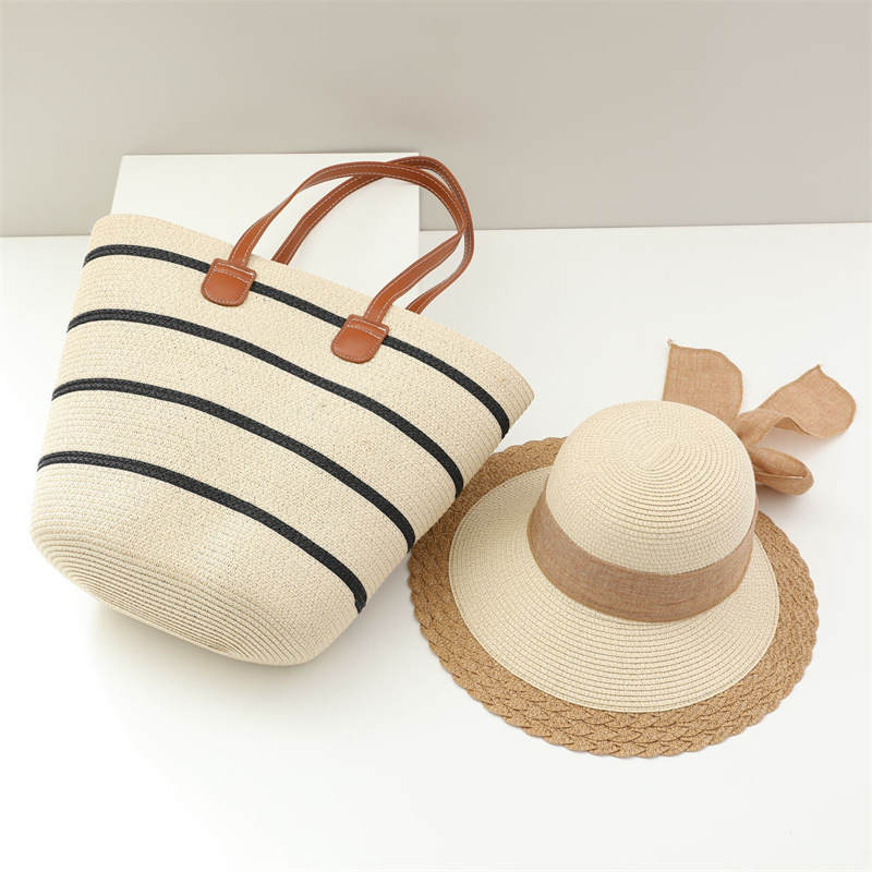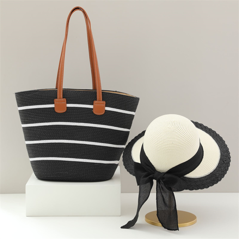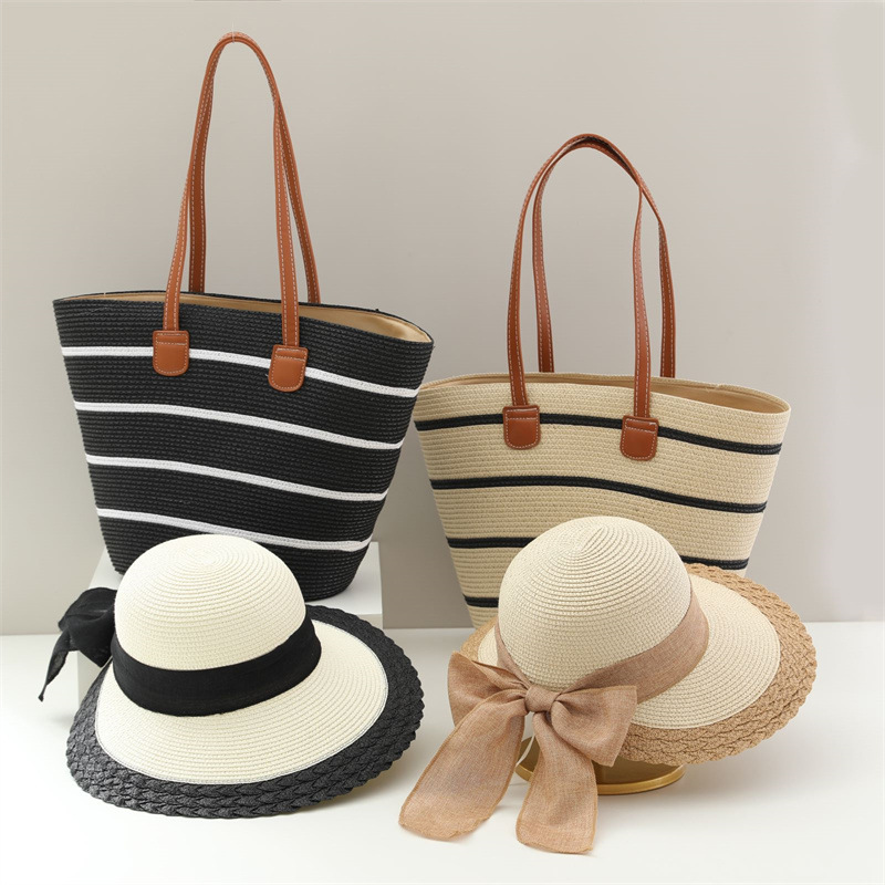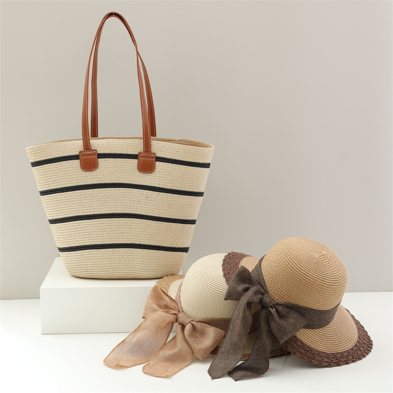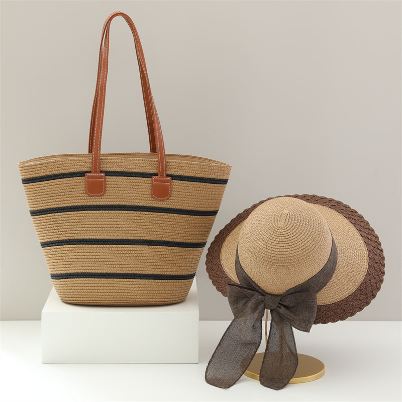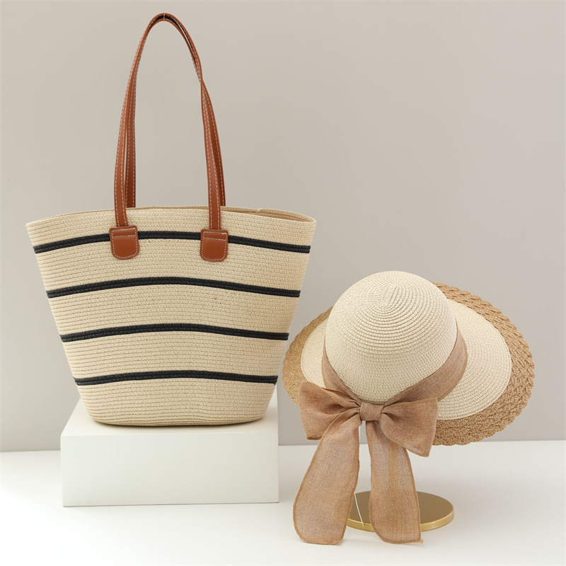 여름 밀짚 모자 줄무늬 어깨 밀짚 짠 가방 대용량 캐주얼 올 매치 여성용 비치 짠 가방스토어 가기