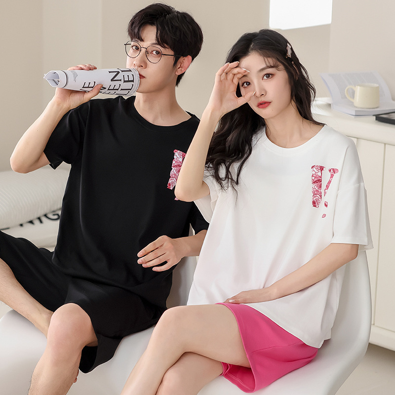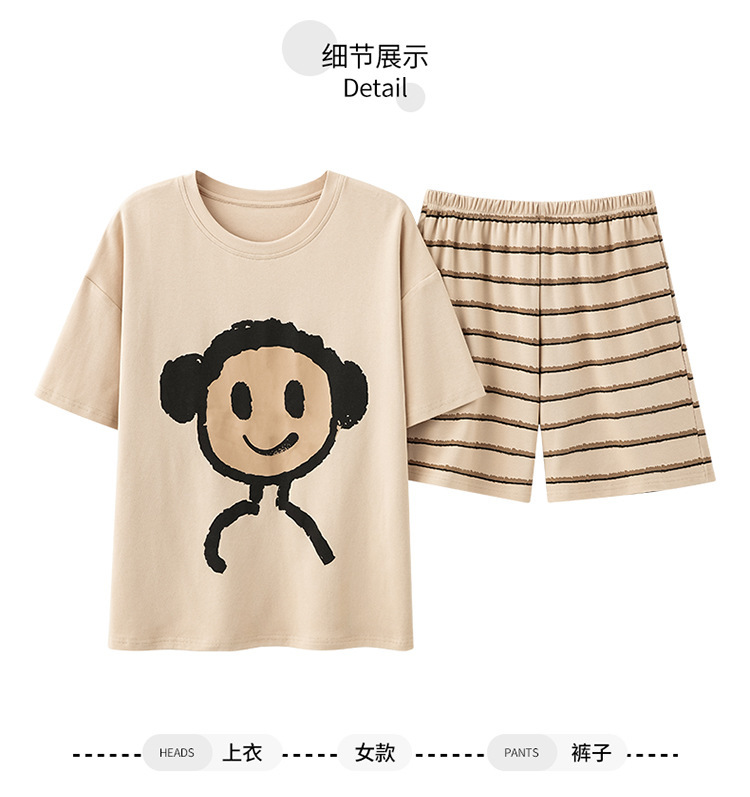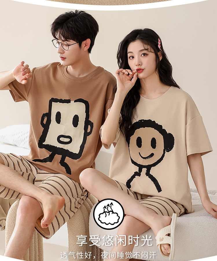 커플 잠옷 여름 순수한면 만화 귀여운 반팔 반바지 얇은 외부 입고 남성과 여성 학생 홈 의류 세트스토어 가기