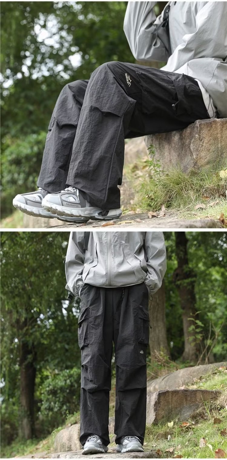 충전 바지 남자 가을 미국 기능성 착륙 낙하산 바지 느슨한 다리 발가락 캐주얼 야외 하이킹 등반 바지스토어 가기