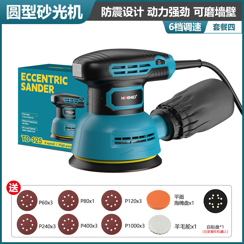 5 인치 사포 기계 속도 제어 그라인더 편심 페인트 연마 기계 목공 전기 목재 가구 평면 샌더