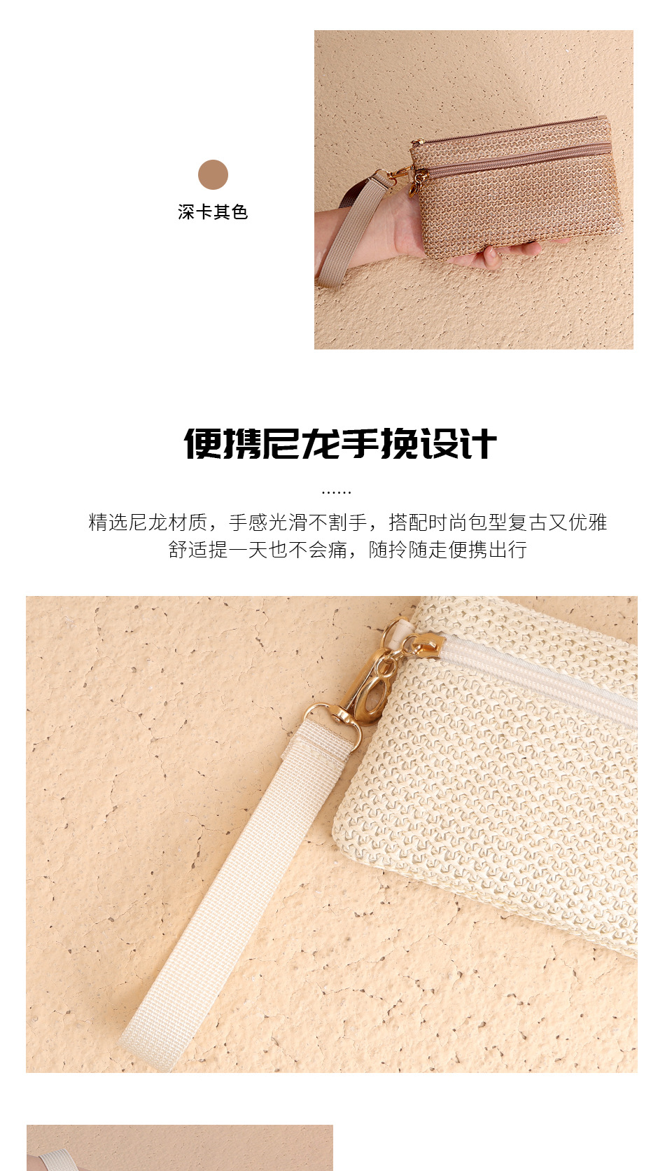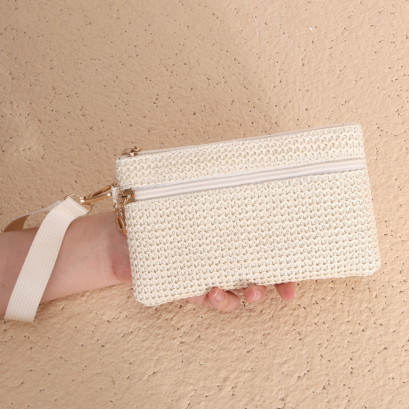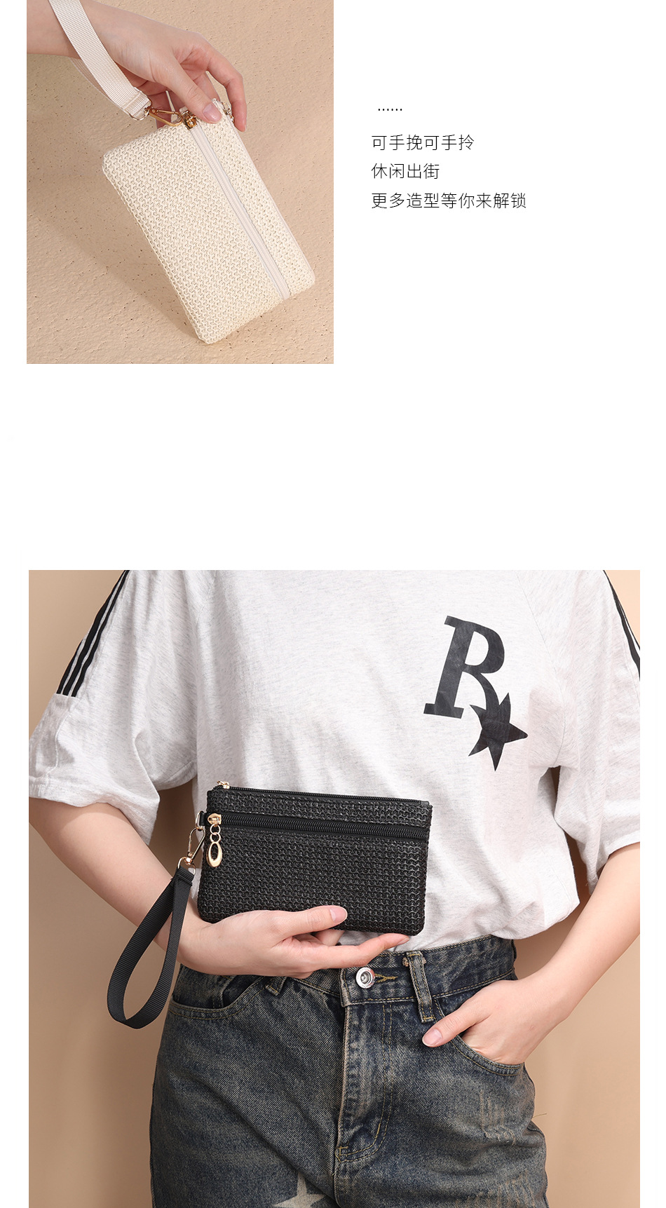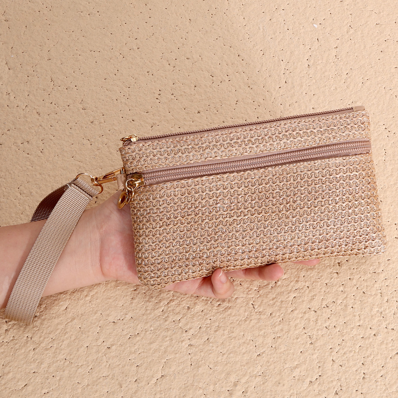 2025년 신상품 밀짚 지갑 동전 지갑 장지갑 동전 키 카드 지갑 여성용 지갑 더블 지퍼 핸드백