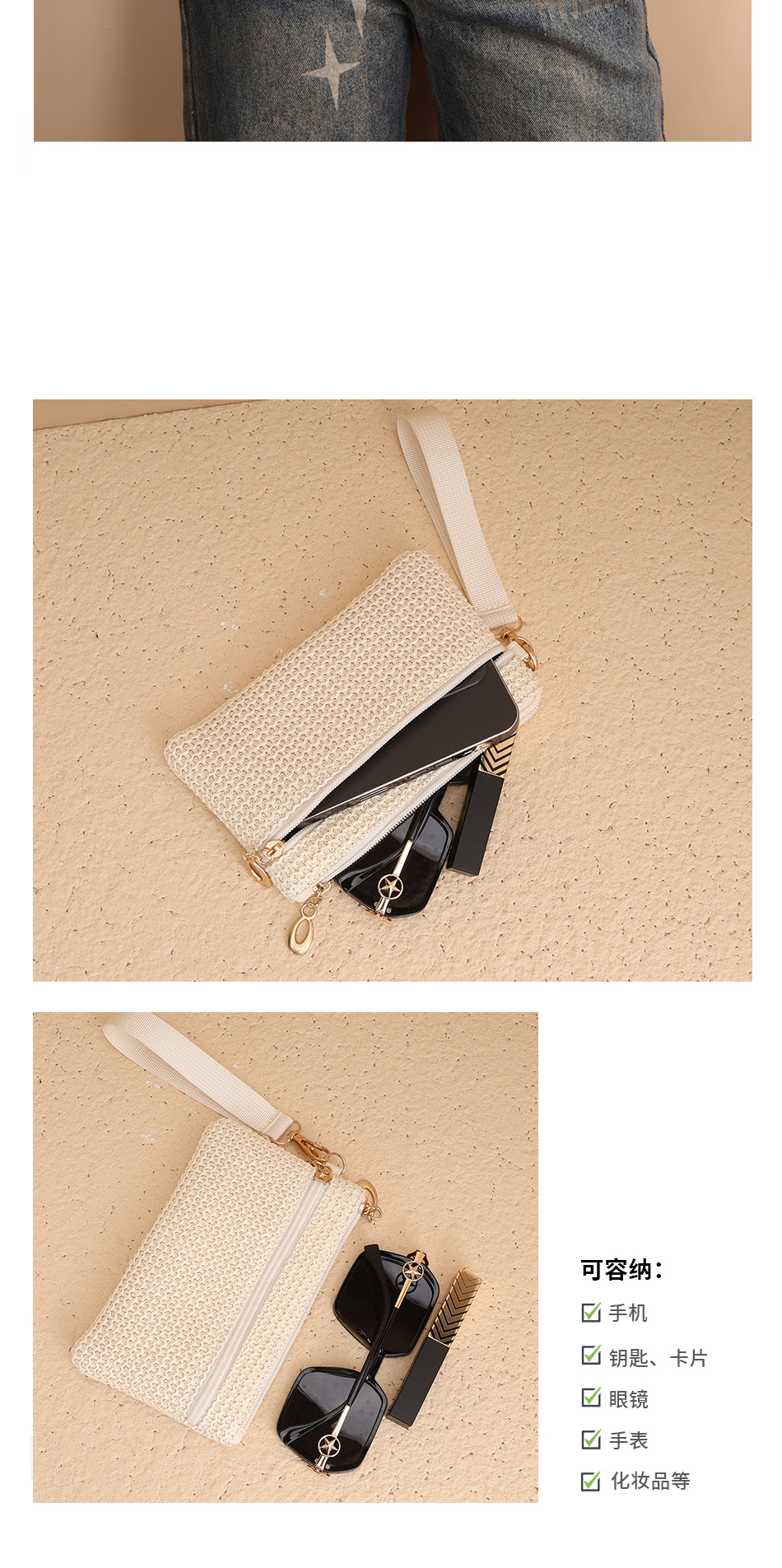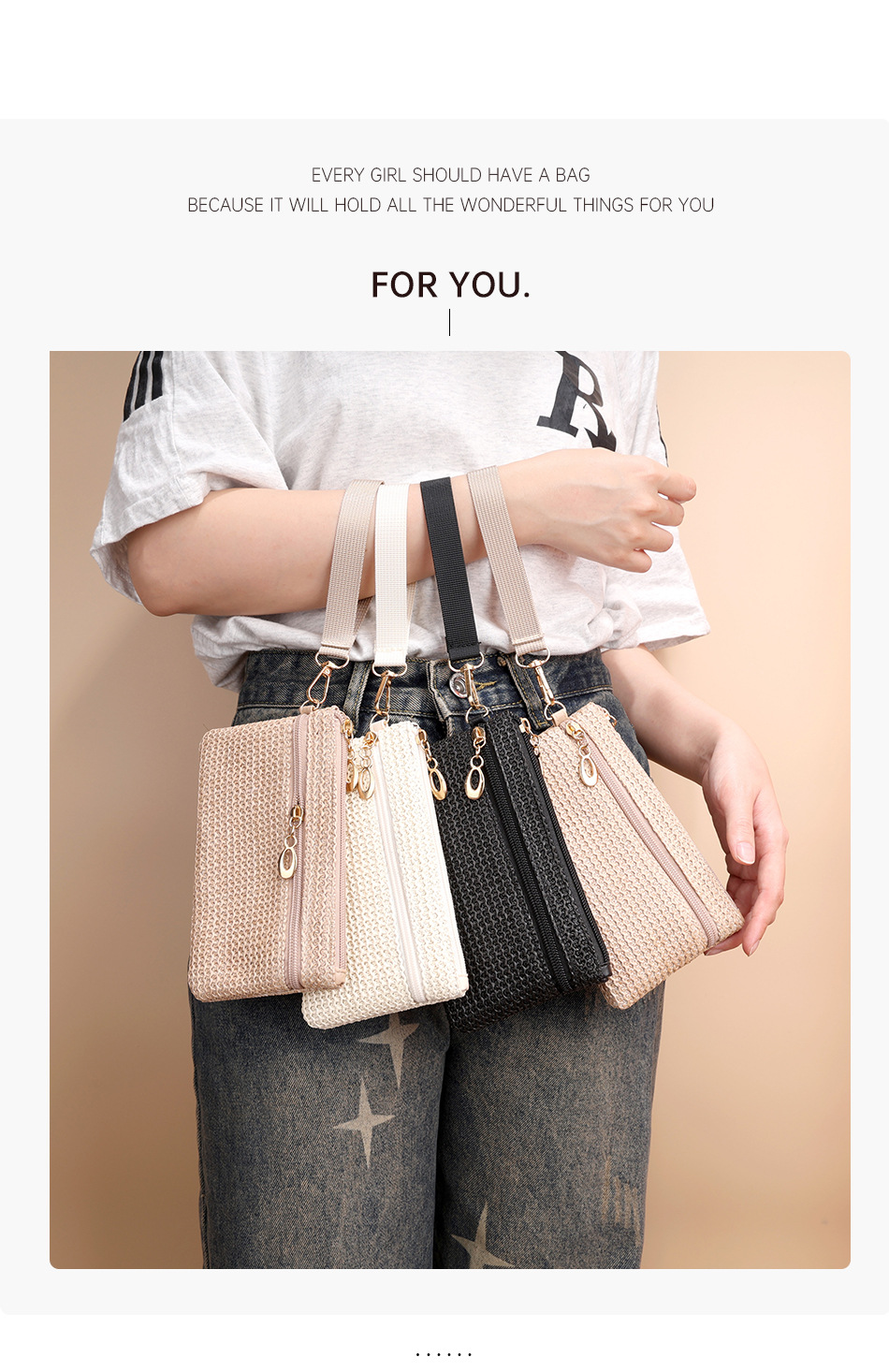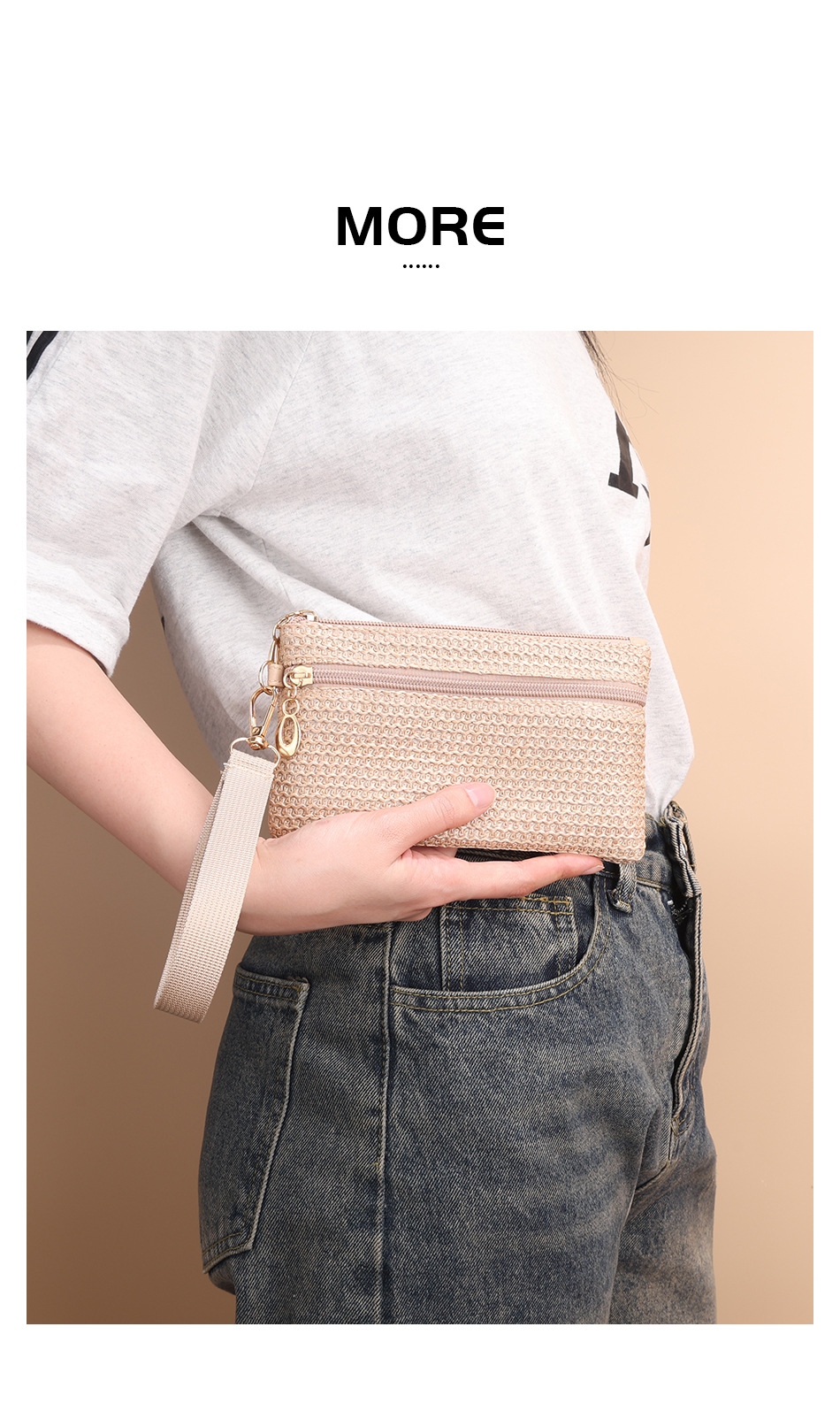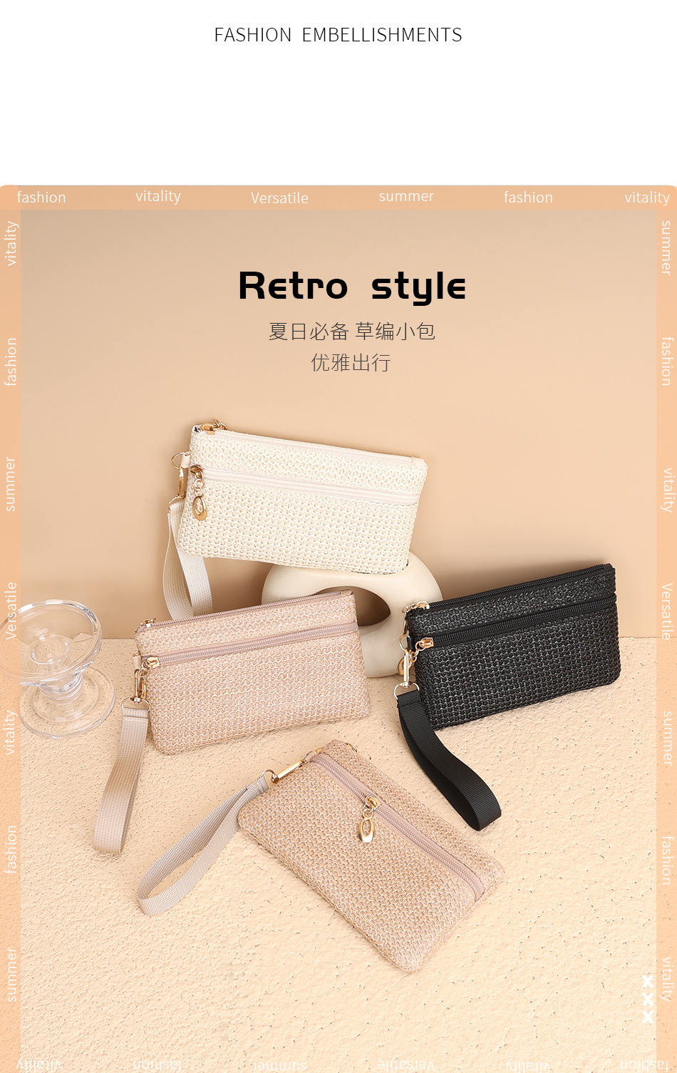 2025년 신상품 밀짚 지갑 동전 지갑 장지갑 동전 키 카드 지갑 여성용 지갑 더블 지퍼 핸드백