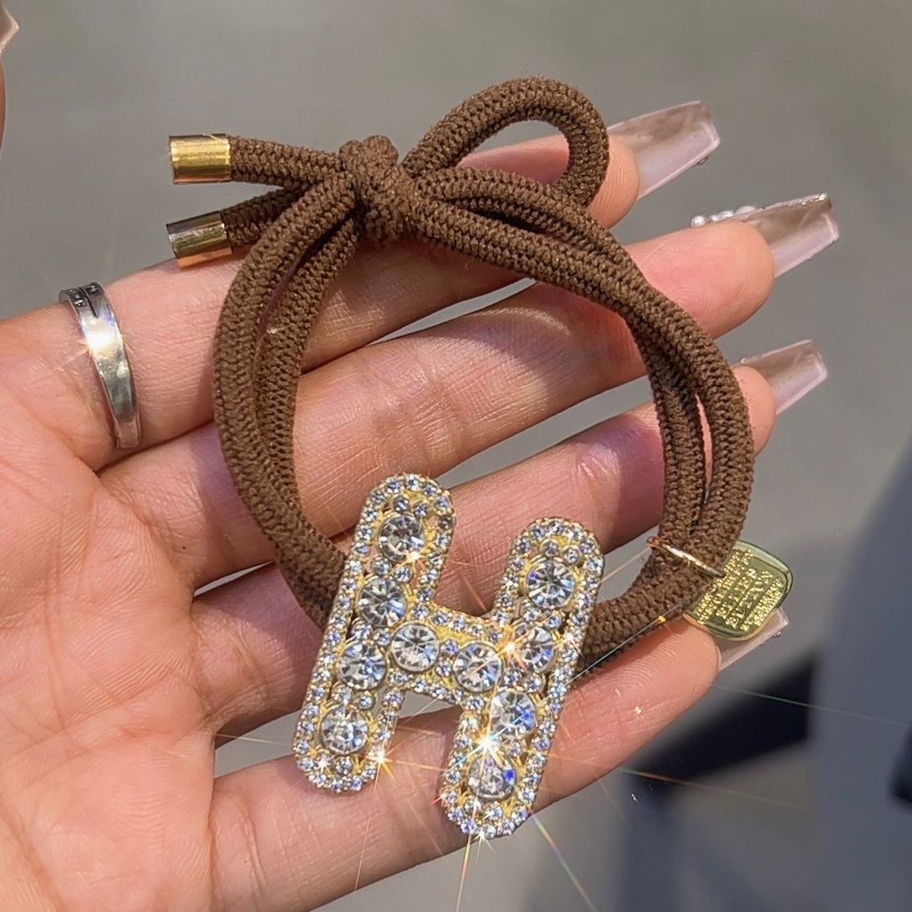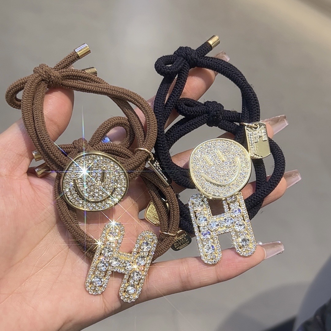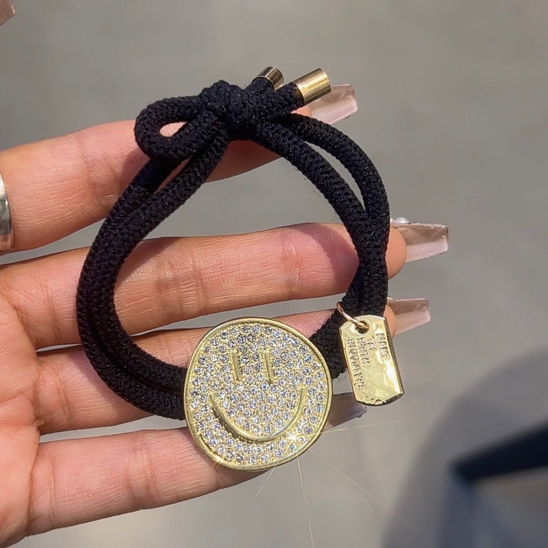 헤어 로프 한국 틈새 고급 헤어 로프 여성용 고무 텐돈 높은 탄성 헤어 링 웃는 얼굴 성인 헤어 로프 풀 다이아몬드 헤어 액세서리스토어 가기