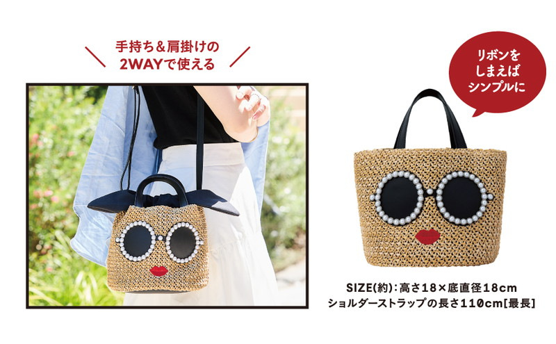 일본 잡지 가방 A- Jolie 안경 빨간 입술 밀짚 핸드백 귀여운 만화 일본 패션 핸드백스토어 가기