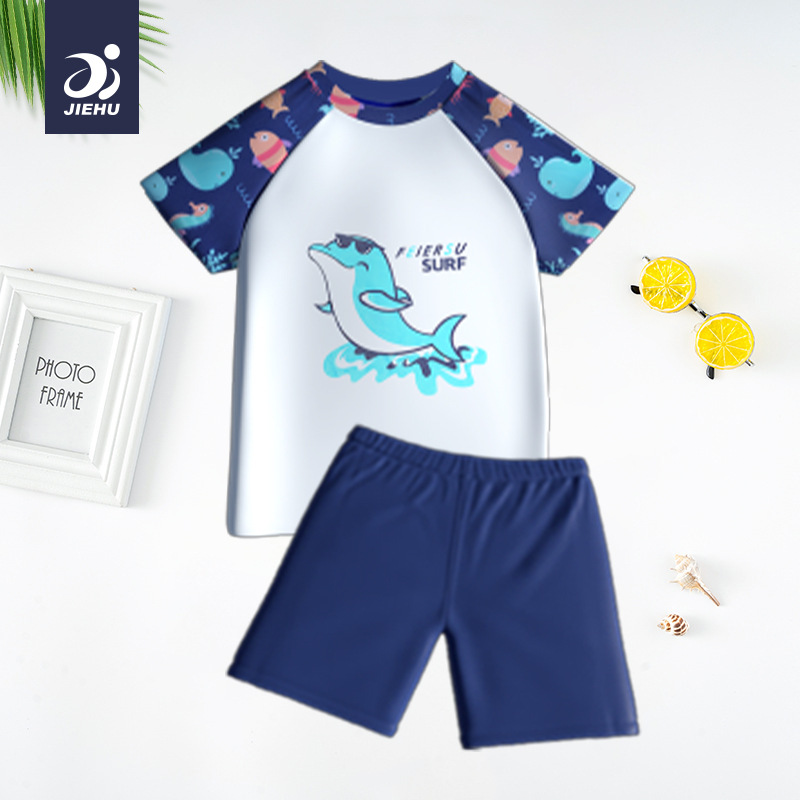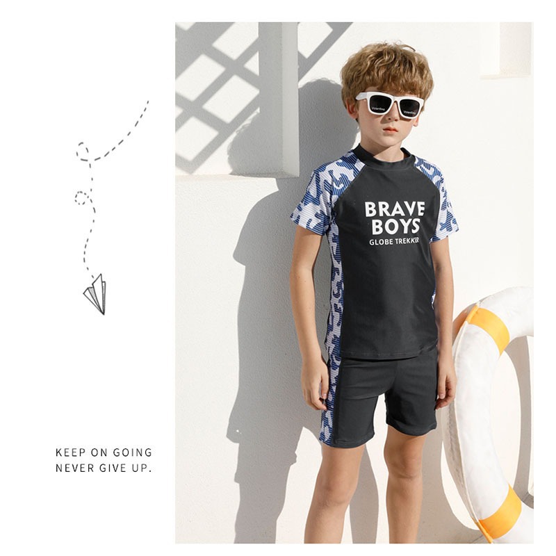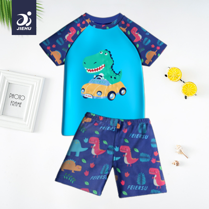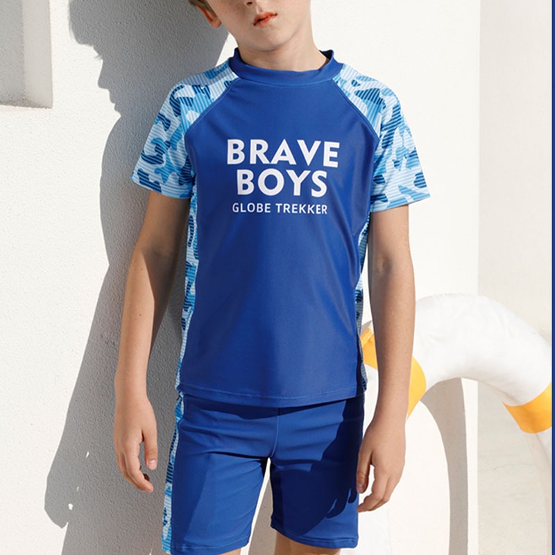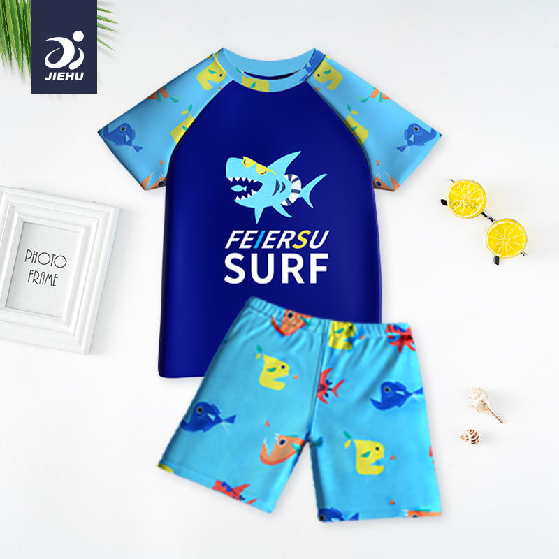 어린이 수영복 소년 분할 수영복 소형, 중형 및 대형 어린이 태양 보호 빠른 건조 수영 세트 2024 수영 트렁크 도매