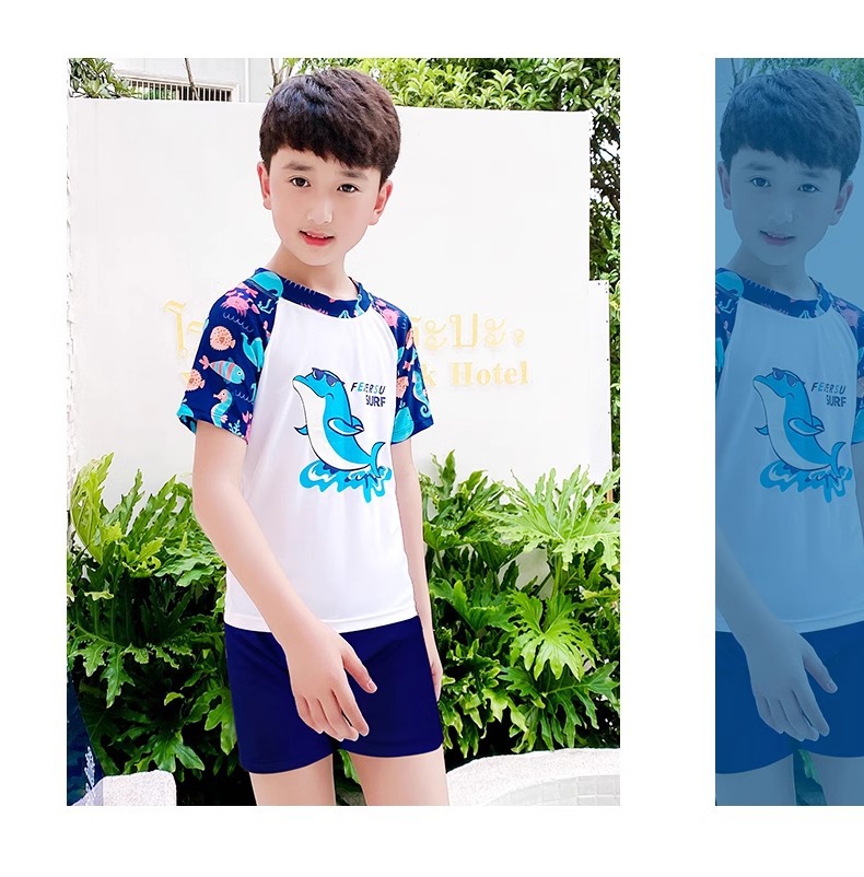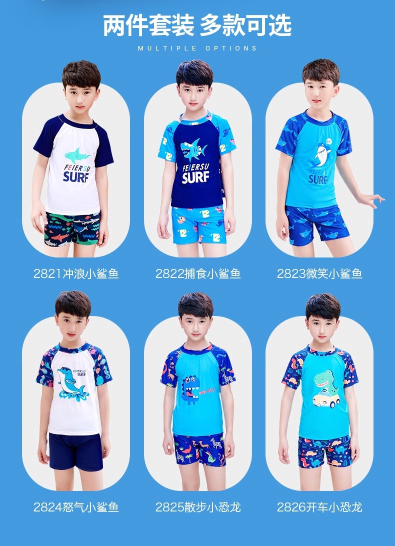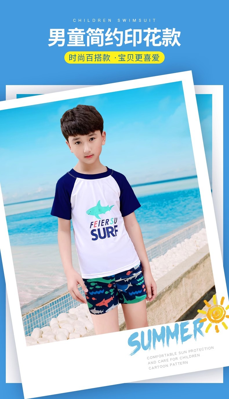 어린이 수영복 소년 분할 수영복 소형, 중형 및 대형 어린이 태양 보호 빠른 건조 수영 세트 2024 수영 트렁크 도매스토어 가기