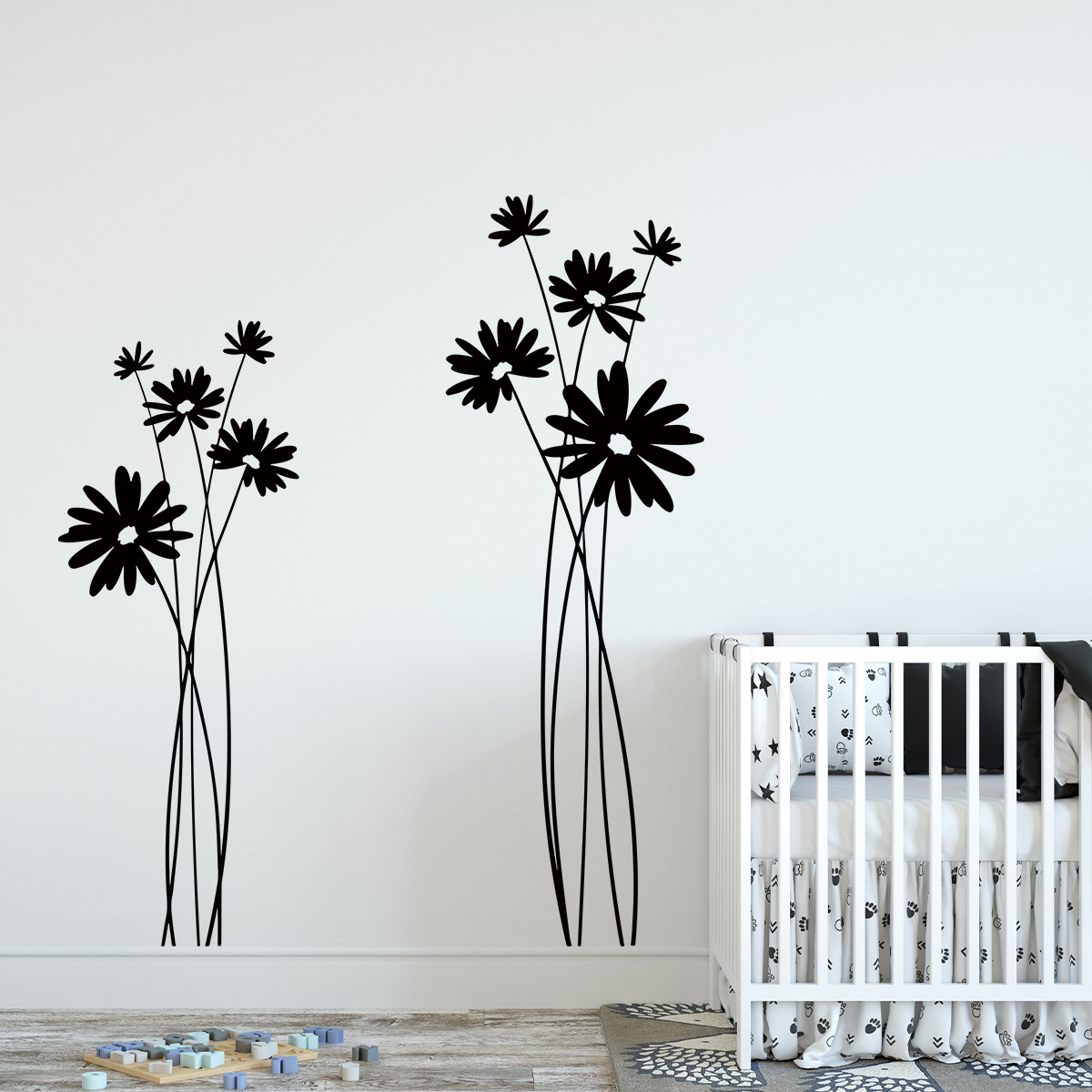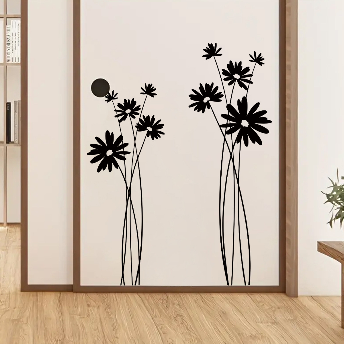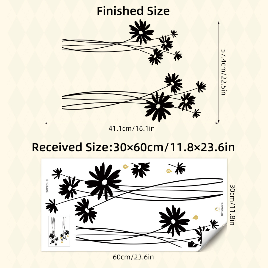 흑백 간단한 예술 꽃 실루엣 자기 접착 벽 스티커 방 거실 배경 벽 장식 스티커 BR0539E스토어 가기