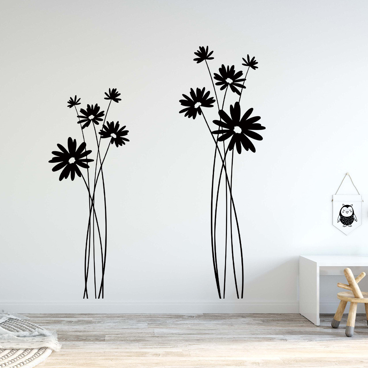 흑백 간단한 예술 꽃 실루엣 자기 접착 벽 스티커 방 거실 배경 벽 장식 스티커 BR0539E