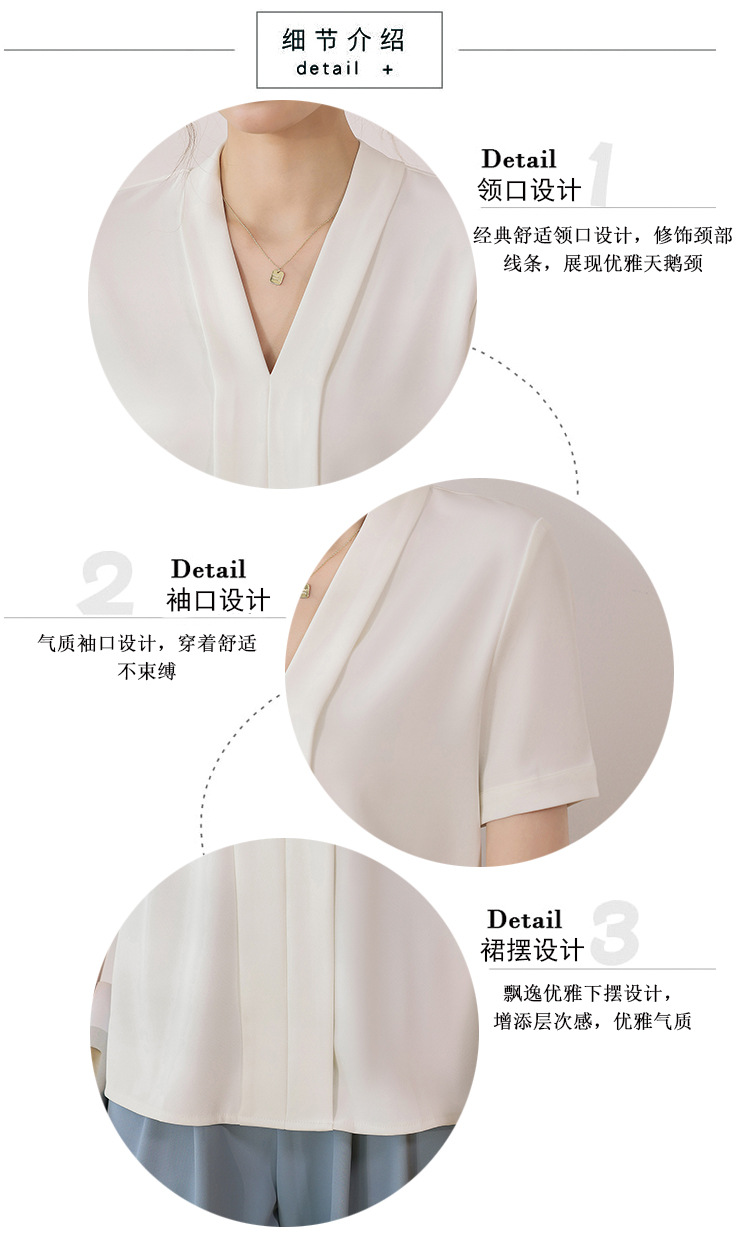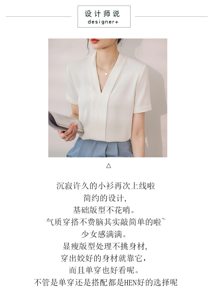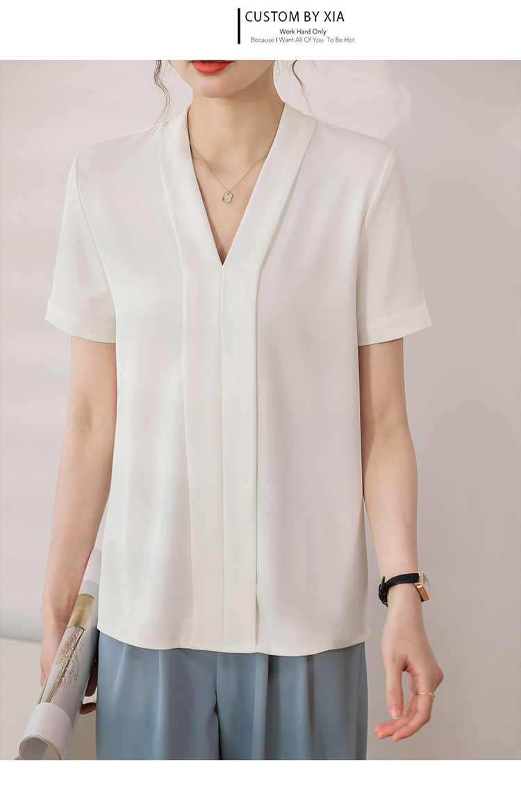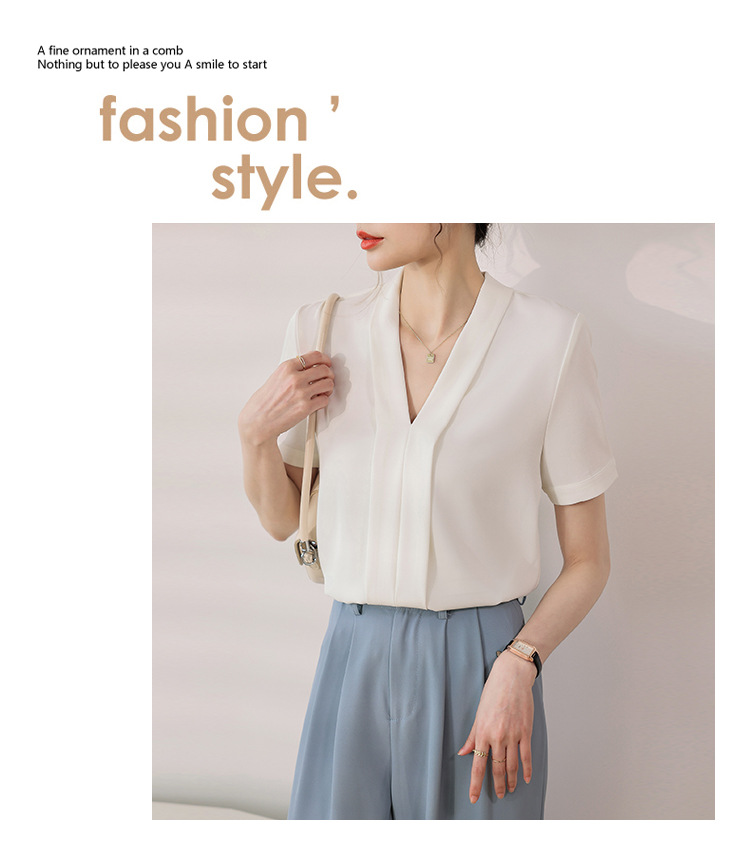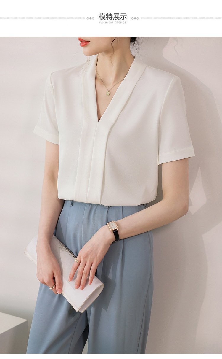 2024 시폰 셔츠 여성 디자인 센스 틈새 비즈니스 착용 통근 셔츠 여름 새로운 반팔 V 넥 탑스토어 가기