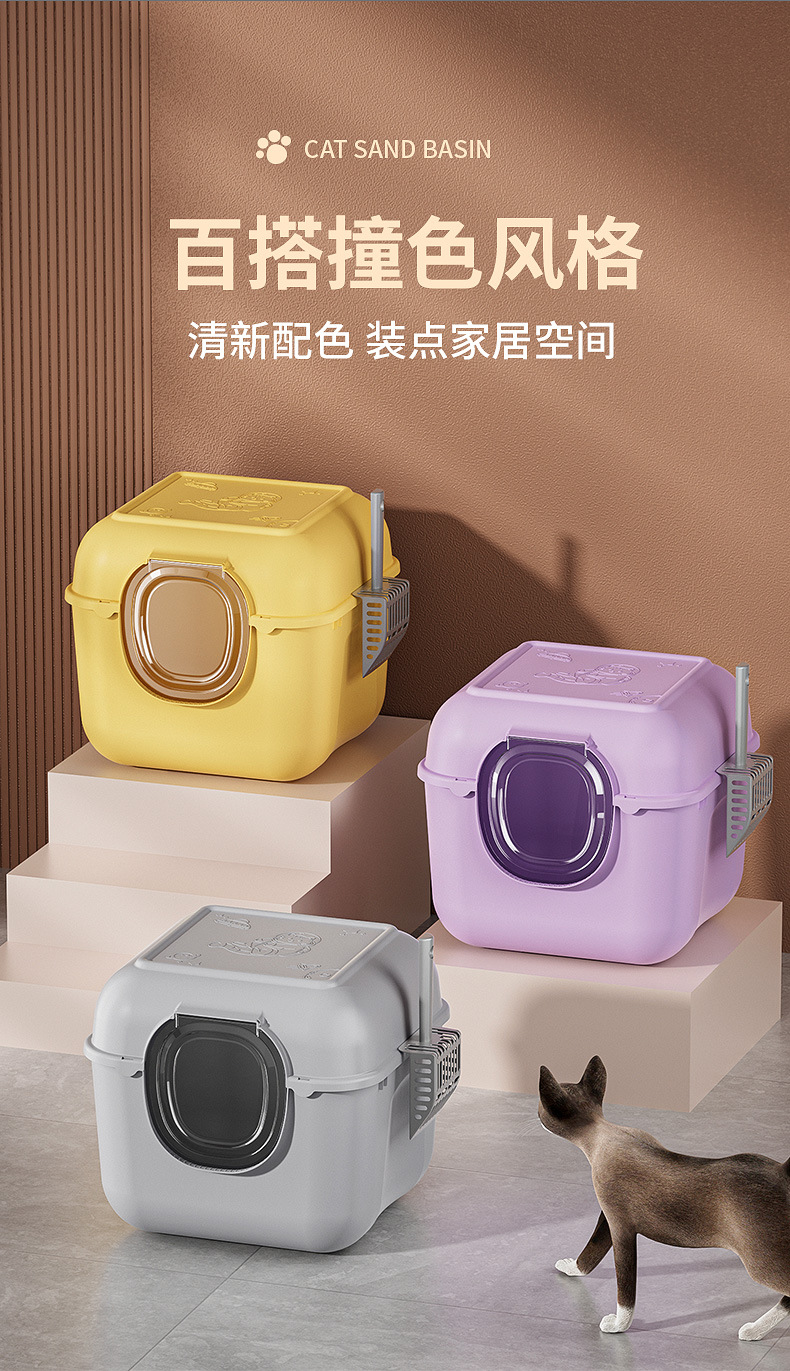 애완 동물 고양이 완전히 밀폐 된 화장실 탈취제 안티 스플래시 고양이 쓰레기 분지 고양이 변기 확대 배설물 분지 국경 도매스토어 가기