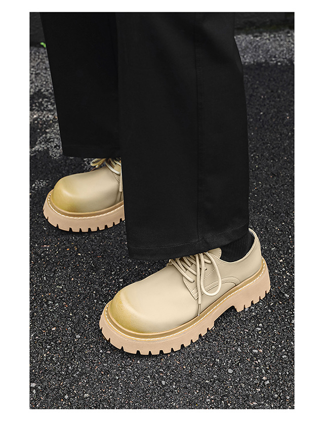 새로운 스타일 가벼운 럭셔리 플랫폼 캐주얼 큰 발가락 가죽 신발 남성 높이 증가 로퍼 유행 간단한 디자인 트렌디 한 더비 신발스토어 가기