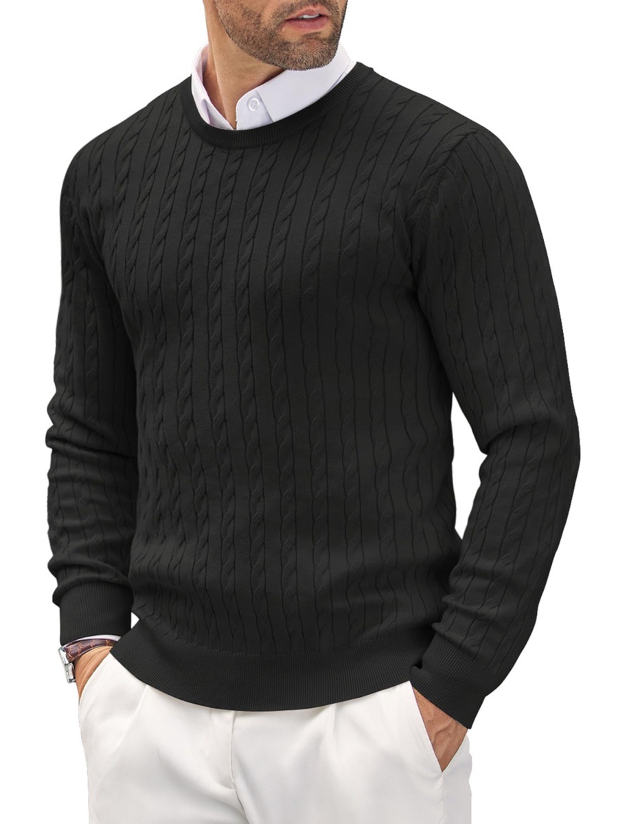 트위스트 니트 스웨터 중년 남성 라운드 넥 슬림 피트 크로스 보더 긴팔 캐주얼 다목적 니트 아우터 스웨터