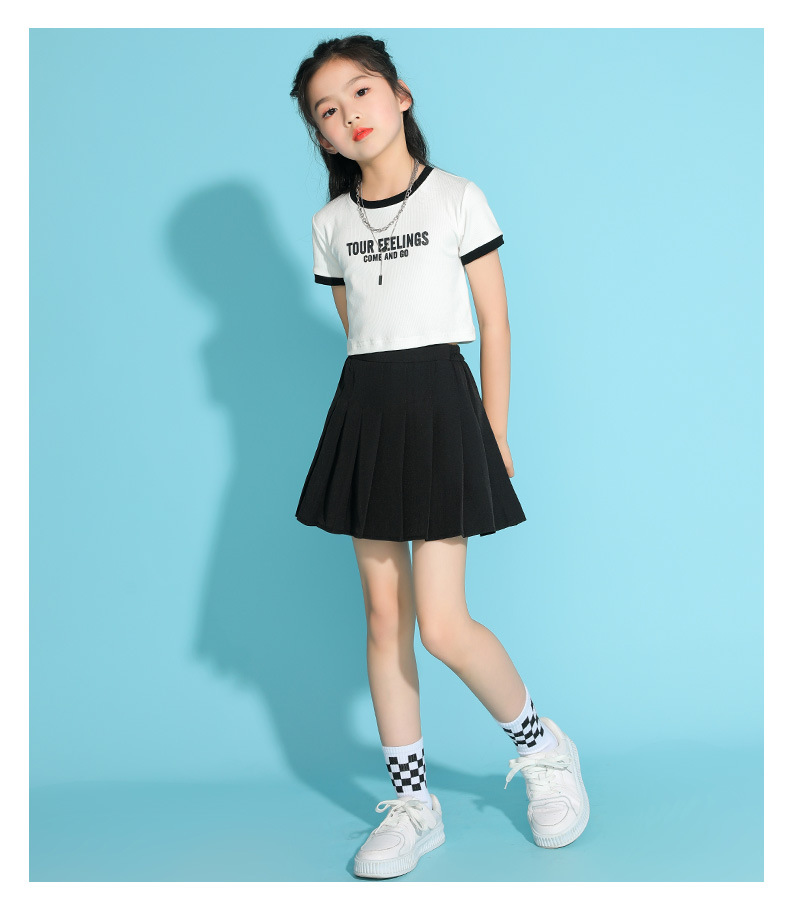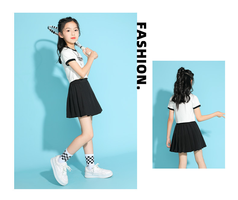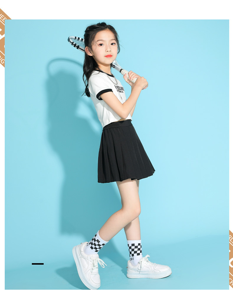여자 테니스 스커트 여름 새로운 스타일 중대형 어린이 검은 주름 스커트 여름 패션 여자 스포츠 짧은 치마 얇은스토어 가기