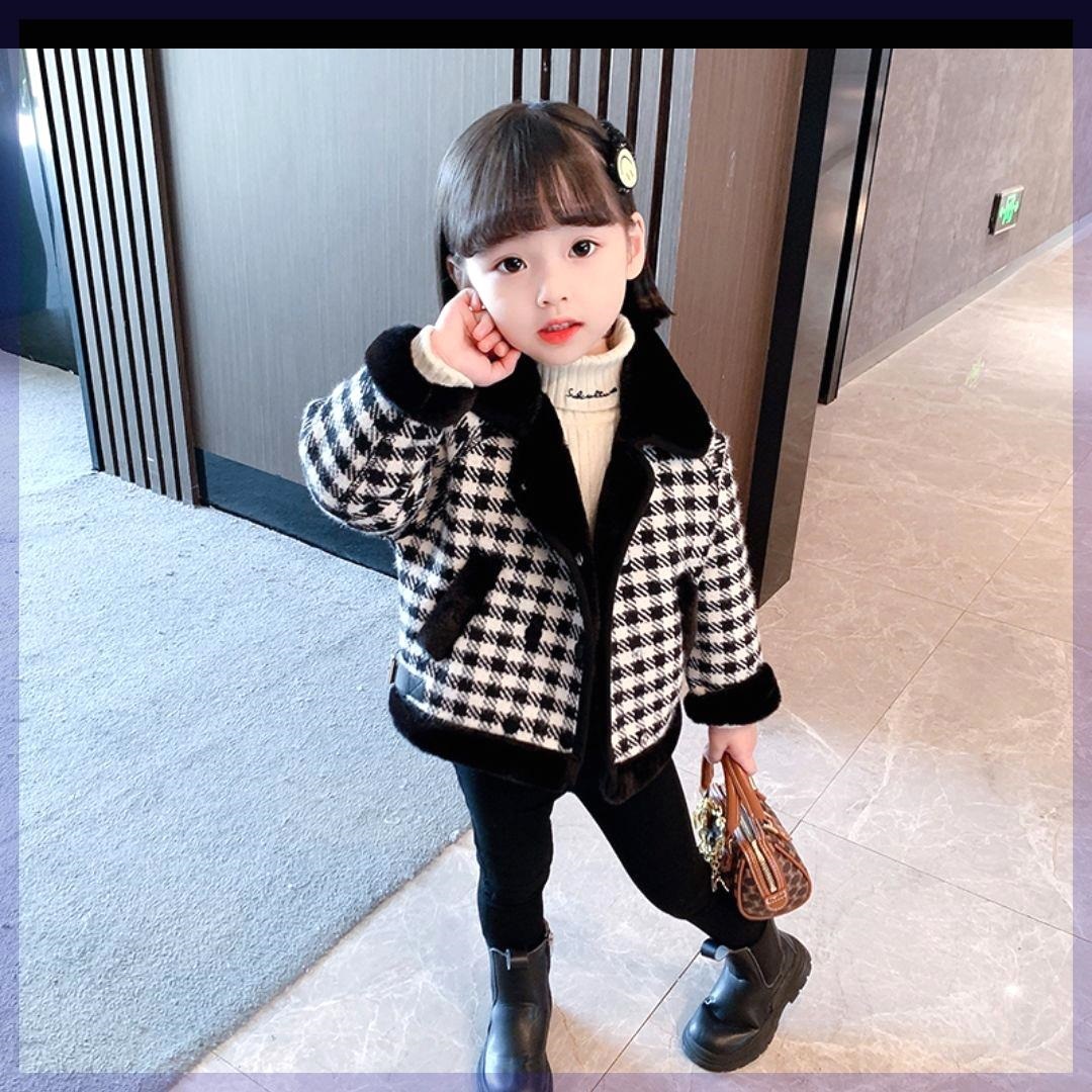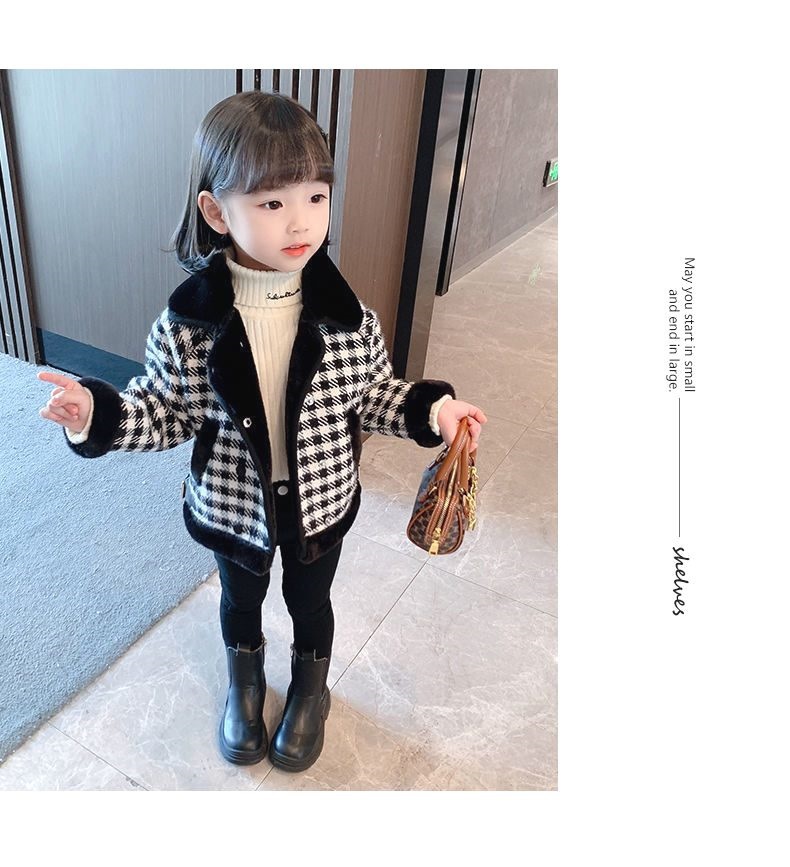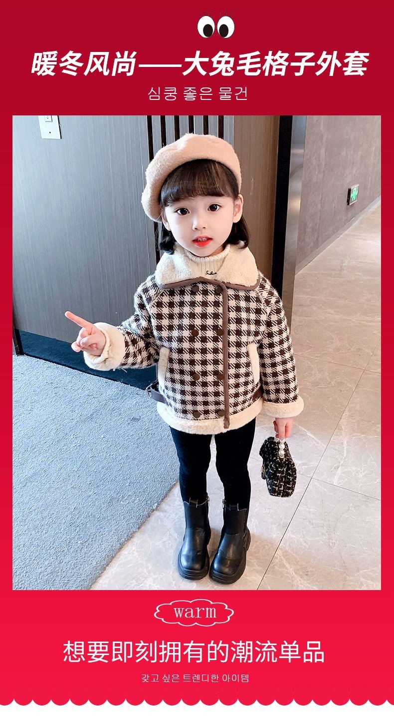 소녀들의 두꺼운 코트 2021 년 가을과 겨울 새로운 서양식 인터넷 기념 어린이 아기 소녀의 기모 격자 무늬 모직 코트스토어 가기